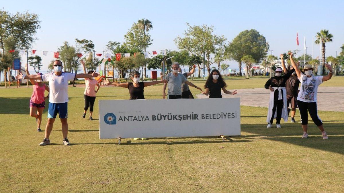 Antalya Büyükşehir Belediyesi, sağlıklı ve zinde yaşamı teşvik için Karaalioğlu Parkı ve Konyaaltı Sahili’nde sosyal mesafeli sabah sporu etkinliği düzenliyor.