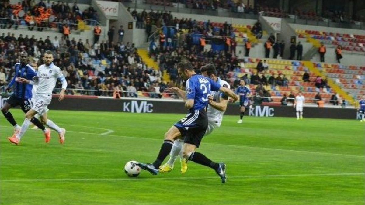 Spor Toto Süper Lig'in 30. haftasında Kayseri Erciyesspor kendi evinde Trabzonspor ile karşı karşıya geldi. Mücadelenin ilk yarısı Trabzonspor'un 3-0'lık üstünlüğüyle tamamlandı.MAÇTAN DAKİKALAR (İLK YARI)5. dakikada Yusuf'un ortasında ceza sahası içinde topa iyi yükselen Henrique'nin kafa vuruşunda meşin yuvarlak ağlarla buluştu. 0-120. dakikada Kayseri Erciyesspor'un atağında sağ taraftan yapılan güzel ortaya, Azofeifa istediği gibi vuramadı ve top üstten auta çıktı.23. dakikada İbricic'in rakibinden kaptığı topla sol çaprazdan ceza sahasına girdiği sıradaki vuruşunda meşin yuvarlak kaleci Onur'da kaldı.28. dakikada Zeki Yavru'nun pasında ceza sahası içinde topla buluşan Yusuf'un kaleci ile karşı karşıya kaldığı pozisyondaki vuruşunda meşin yuvarlak ağlarla buluştu. 0-238. dakikada Henrique'nin ceza sahası sol çaprazdan aktardığı topla buluşan Yusuf Erdoğan'ın vuruşunda meşin yuvarlak ağlarla buluştu. 0-3STAT: Kadir HasHAKEMLER: Hüseyin Göçek xx, Orkun Aktaş xx, Arkın Akgöl xxKAYSERİ ERCİYESSPOR: Gökhan xx, Kader xx, Pape Diakhate xx, Ekrem xx, Traore xx, Ibricic xx, Azofeifa xx, Murat xx, Cem Can xx, Cenk Ahmet xx, Edinho xxYEDEKLER: Atilla, Josef Cinar, Mehmet, Emre, Yiğit, Hüseyin, TurgayTEKNİK DİREKTÖR: Hikmet KaramanTRABZONSPOR: Onur xx, Bosingwa xx, Mustafa xx, Zeki xx, Caner xx, Kadir xx, Adrian xx, Olcan xx, Yusuf Erdoğan xx, Bourceanu xx, Henrique xxYEDEKLER: Zeki, Mustafa, Soner, Abdulkadir, Gökhan, Emre, ŞahinTEKNİK DİREKTÖR: Hami MandıralıGOLLER: Henrique (dk. 5), Yusuf Erdoğan (dk. 28 ve 39) (Trabzonspor)SARI KART: Caner Osmanpaşa (Trabzonspor)