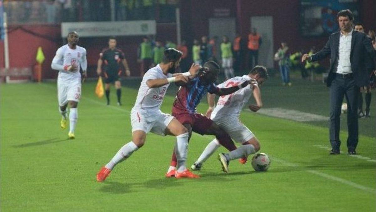 Spor Toto Süper Ligi’nin 33. haftasında sahasında Balıkkesirspor’u konuk eden Trabzonspor karşılaşmanın ilk yarısında rakibiyle 1-1 berabere kaldı.MAÇTAN DAKİKALAR (İLK YARI)10. dakikada Mehmet Ekici’nin sağ taraftan ceza sahası içine doğru gönderdiği topa Cardozo’nun kafa vuruşunda kaleci Vukovic meşin yuvarlağı kornere çıkardı.25. dakikada ceza sahası sağ çaprazında Mehmet Ekici’nin arka direği doğru ortasında Medjani’nin kafa vuruşunu kaleci Vukovic topu kornere çeldi.29. dakikada Uğur Demirok’un kaptırdığı top sonrası ani atak geliştiren Balıkesirspor’da Muğdat Çelik’in pasında ceza sahası içinde topla bulaşan Aykut Çeviker düzgün bir vuruşla kalecinin solundan meşin yuvarlağı ağalara gönderdi. 0-134. dakikada Yusuf Erdoğan’ın ceza sahası dışından sert şutunda üst direğe çarpıp yerden seken topa kaleci Vukovic’den önce yükselen Medjani kafa ile topu ağalara gönderdi. 1-1STAT: Avni AkerHAKEMLER: Yunus Yıldırım xxx, Adil Sinem xxx, Cevdet Kömürcüoğlu xxxTRABZONSPOR: İbrahim Demir x, Zeki Yavru x, Aykut Demir x, Uğur Demirok x, Mustafa Akbaş x, Medjani xx, Özer Hurmacı x, Mehmet Ekici x, Waris x, Yusuf Erdoğan xx, Cardozo xYEDEKLER: Uğur Çakır, İshak Doğan, Fatih Atik, Belkalem, Musa Nizam, Soner, FerhatTEKNİK DİREKTÖR: Ersun YanalBALIKESİRSPOR: Vukovic xx, Bülent Cevahir xx, Hasan xx, Glumac xx, Berkan Emir xx, Abdulhamit Yıldız xx, Aykut Çeviker xxx, Eray xx, Ermin Zec xx, Isaac Premise xx, Muğdat Çelik xxYEDEKELER: Ertuğrul, Kulusıc, Ali Öztürk, Oğuzhan, İlhan, Burak, İbrahim İçuzTEKNİK DİREKTÖR: Cihat ArslanGOLLER: Aykut Çeviker (dk. 29) (Balıkesirspor), Medjani (dk. 34) (Trabzonspor)