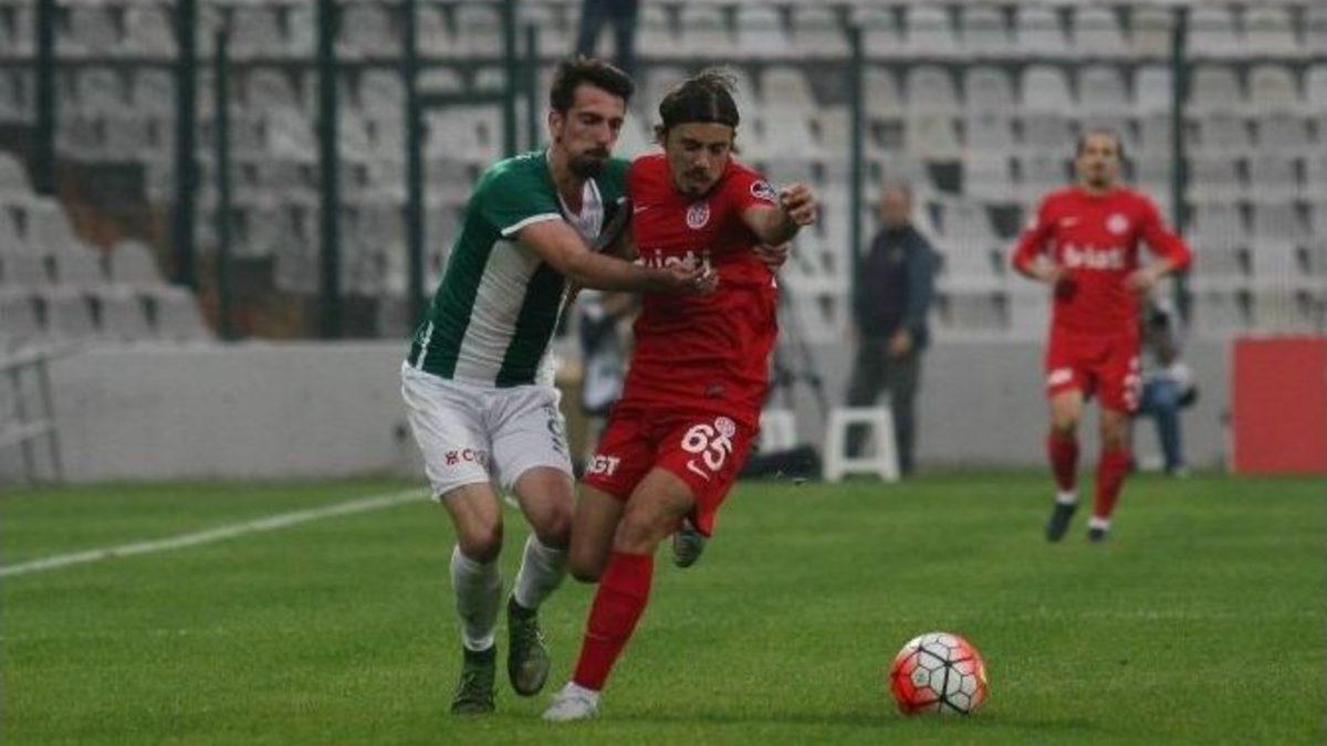 Bursaspor, Spor Toto Süper Lig’in 8. haftasında sahasında Antalyaspor’u konuk etti. Müsabaka, Antalyaspor’un 2-0 üstünlüğüyle sona erdi.MAÇTAN DAKİKALAR (İKİNCİ YARI)47. dakikada Makoun ceza sahası içinde rakibinden sıyrılarak vurduğu şutta top Mert’te kaldı.48. dakikada Sivok’un ceza sahası dışından çektiği şutta top savunmaya çarparak direğin hemen yanından kornere çıktı.50. dakikada Eto’o’nun pasında ceza sahası içinde topla buluşan Guilherme’nin şutunda meşin yuvarlak üst direğe çarparak auta gitti.55. dakikada Faty’in ayağından topu çalan Sakıp, pasını Eto’o’ya verdi. Kaleci Mert’i geçen Eto’o topu filelere gönderdi. 0-176. dakikada Dzsudzsak’ın ceza sahası dışından çektiği şutta meşin yuvarlak az farkla auta gitti.90. dakikada Makoun’nun pasında ceza sahası içinde topla buluşan Emrah düzgün bir vuruşla meşin yuvarlağı ağlara gönderdi. 0-2STAT: AtatürkHAKEMLER: Cüneyt Çakır xx, Bahattin Duran xx, Tarık Ongun xxBURSASPOR: Mert xx, Advincula xx, Serdar x, Sivok xx, Aziz x, Faty xx, Jorquera x, Stoch x (Cuenca dk. 60 xx), Josue x (Sutter dk. 77 x), Dzsudzsak xx, Necid xxYEDEKLER: Harun, Şamil, Bekir, Erdem, EmreTEKNİK DİREKTÖR: Ertuğrul SağlamANTALYASPOR: M’Bolhi xxx, Zeki x (Kadir dk. 62 xx), Diarra x (Serdar dk. 62 xx), Eto’o xxx, Emrah xxx, Makoun xxx, Sakıp xx, Guilherme xx (Celutska dk. 82 x), Ömer xx, Diego xx, Lokman xxYEDEKLER: Ozan, Ahmet, Emre, OzanTEKNİK DİREKTÖR: Yusuf ŞimşekGOLLER: Eto’o (dk. 55) Emrah (dk. 90) (Antalyaspor)KIRMIZI KART: Jorquera (dk. 41) (Bursaspor)SARI KARTLAR: Zeki, Emrah, Ömer (Antalyaspor) Sivok (Bursaspor)