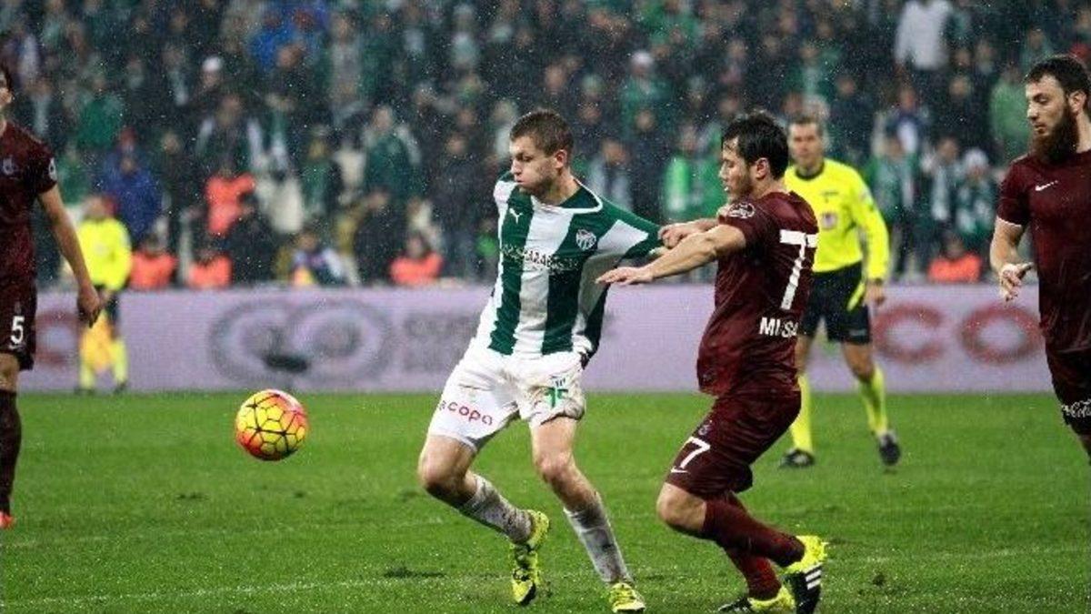 Bursaspor, Spor Toto Süper Lig’in 18. haftasında sahasında Trabzonspor’u konuk etti. Müsabaka Bursaspor’un 4-2’lik üstünlüğüyle sona erdi.MAÇTAN DAKİKALAR (İKİNCİ YARI)49. dakikada Stoch’un ceza sahası dışından çektiği şutu Onur güçlükle kornere tokatladı.51. dakikada Serdar’ın ceza sahası dışından çektiği şutta Sivok’un kafa vuruşu fileler buluştu. Önce golü veren Serkan Çınar, Trabzonsporu futbolcuların yoğun itirazının ardından yardımcısıyla istişare ederek, golü ofsayt gerekçisiyle geçersiz saydı.55. dakikada Cavanda’nın pasıyla sağ çaprazdan kaleci ile karşı karşıya kalan Deniz’in şutunda top yandan dışarıya gitti.58. dakikada Balazs’ın ceza sahası dışından çektiği şutta kaleci Onur topu güçlükle çeldi.60. dakikada Stoch’dan aldığı pasla sağ kanattan ceza sahası içerisine giren Balazs’ın şutu kaleci Onur’un bakışları arasında uzak direğin hemen yanından auta gitti.70. dakikada Stoch’un ceza sahası dışından kullandığı serbest vuruşu Serdar kafayla kale sahasına indirdi. Kale sahasında düzgün bir kafa vuruşu yapan Sivok, Onur’un müdahalesine rağmen topu ağlarla buluşturdu. 3-281. dakikada sol kanattan kazanılan köşe vuruşunda Stoch, Aziz ile paslaştı. Ardından Stoch’un penaltı noktasına ortaladığı topa düzgün kafa vuruşu yapan Serdar meşin yuvarlağı filelerle buluştu. 4-2STAT: Bursa Büyükşehir BelediyesiHAKEMLER: Serkan Çınar xx, Süleyman Özay xx, Uygar Bebek xxBURSASPOR: Mert xx, Erdem xx, Serdar xxx, Sivok xxx, Aziz xxx, Faty xx, Jorquera x (Şamil dk. 66 xx), Balazs xxx, Stoch xxx (Bekir dk. 89 ?), Sercan xxx (Emre dk. 75 xx), Necid xxxYEDEKLER: Harun, Cuenca, Dany, SutterTEKNİK DİREKTÖR: Hamza HamzaoğluTRABZONSPOR: Onur x, Aykut xx, Okay x, Mehmet xx, Marin x (Deniz dk. 49 x), Erkan xx, Mbia x, Aytaç x, Cavanda x, Musa xx, Cardozo xx (Soner dk. 61 x)YEDEKLER: Esteban, Muhammet, Ramazan, Mehmet Kuroğlu, ÖzerTEKNİK DİREKTÖR: Sadi TekelioğluGOLLER: Musa (dk. 2), Cardozo (dk. 7) (Trabzonspor), Sercan (dk. 23), Necid (dk. 39 pen.), Sivok (dk. 70), Serdar (dk. 81) (Bursaspor)SARI KARTLAR: Faty, Serdar (Bursaspor), Mbia, Aykut, Cavanda, Soner (Trabzonspor)
