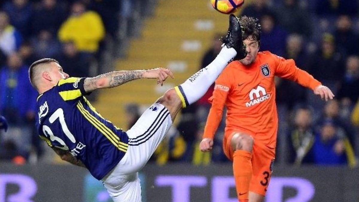 Spor Toto Süper Lig’in 18. haftasında Fenerbahçe, sahasında lider Medipol Başakşehir ile karşılaşıyor. Mücadelenin ilk yarısı sarı-lacivertli ekibin 1-0’lık üstünlüğüyle sonuçlandı.Maçtan dakikalar (İlk yarı)28. dakikada Hasan Ali’nin soldan yaptığı ortada Alper Potuk, Ozan Tufan’a verdi. Bu futbolcunun vuruşunda Emre Belözoğlu’na çarpan top ağlara gitti: 1-0.31. dakikada organize gelişen Medipol Başakşehir atağında ceza sahası içinde Visca’nın sert şutunda top yan ağlarda kaldı.Stat: ÜlkerHakemler: Bülent Yıldırım xxx, Ekrem Kan xxx, Asım Yusuf Öz xxxFenerbahçe: Volkan xx, Şener xxx, Kjaer xxx, Skrtel xx, Hasan Ali xxx, Ozan xxx, Josef xxx, Lens xxx, Salih xx, Alper xxx, Fernandao xYedekler: Fabiano, Van Persie, Karavayev, Neustadter, Yiğithan, Caner, StochTeknik Direktör: Dick AdvocaatMedipol Başakşehir: Volkan Babacan xx, Uğur x, Yalçın xx, Epureanu xx, Eren xx, Mahmut xx, Emre x, Visça xx, Mossoro xx, Cengiz x, Mehmet Batdal xYedekler: Ufuk, Bekir, Alparslan, Caiçara, Doka, Attamah, Mustafa PektemekTeknik Direktör: Abdullah AvcıGol: Ozan Tufan (dk. 28) (Fenerbahçe)Sarı kartlar: Josef de Souza, Lens, Ozan, Fernandao (Fenerbahçe) Uğur Uçar, Mahmut (Medipol Başakşehir)