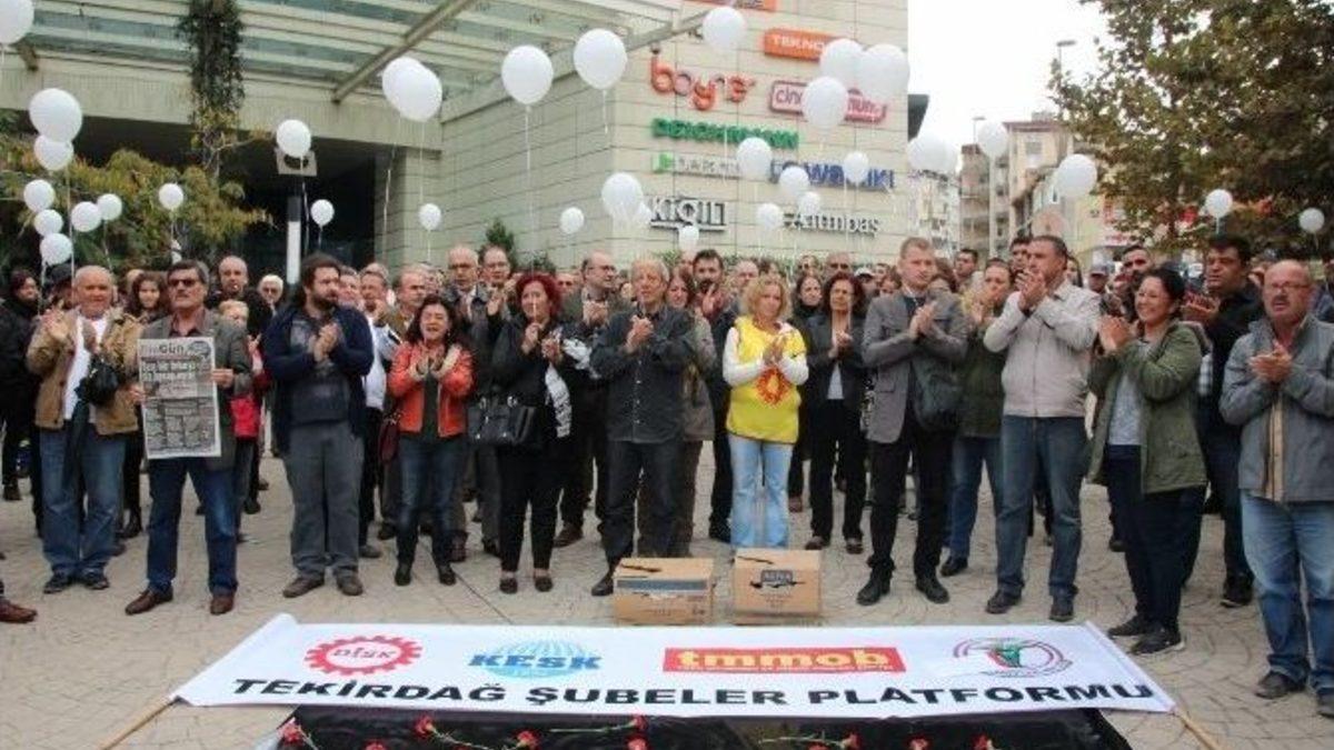 Tekirdağ’da, Sivil Toplum Kuruluşları(STK), Ankara’da yaşanan terör olayını kınamak için beyaz balon bırakıp, güvercin uçurarak oturma eylemi yaptı.Tekirdağ Süleymanpaşa ilçesi Köprübaşı mevkiinde toplanan Sivil Toplum Temsilcileri ve üyeleri Ankara’daki patlamada hayatının kaybedenler için saygı duruşunda bulunarak barış için beyaz balon bırakıp, güvercin uçurdu.STK’lar adına basın açıklaması yapan Eğitim-Sen Tekirdağ Şube Başkanı Kamil Sarı artık yaşanan ölümlerin sona ermesini istediklerini canların yanmamasını istediklerinin ifade ederek, “Ankara’ya Türkiye’nin dört bir yanından insanlar bizimde içinde olduğumuz guruplar barış severler Sıhhiye meydanında bir miting gerçekleştirecekti. Mitingin başlayacağı sırada miting alanında bomba patlatıldı. Bu barışa yapılan bir saldırıdır, katliamdır kınıyoruz. Bütün sorumluların eksikliği olan herkesi kendi vicdanına bırakıyoruz. Bu artık son olsun savaşlar bitsin. Kimse ölmesin bunu daha öncede dedik şimdide diyoruz bundan sonrada hep diyeceğiz. Askerimiz, polisimiz, öğretmenlerimiz, çocuklarımız bu savaşlarda canını verdi artık son bulsun” dedi.Basın açıklamasının ardından gurup 5 dakika oturma eylemi yaparken Tekirdağ Barosu avukatları’da guruba destek olmak için cüppeleriyle alana gelerek oturma eylemine katıldı.