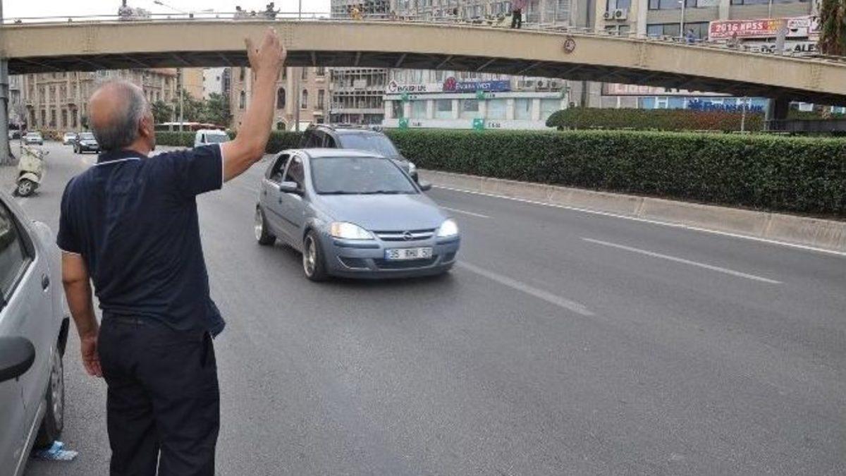 İzmir’in Konak ilçesinde, seyyar su satması zabıtalarca engellendiği için elinde benzin dolu pet şişe ile köprüye çıkan seyyar satıcı Mustafa Karaca, kendini yakıp ölmek istedi. Seyyar satıcıyı indirmekte ikna edemeyen polis bir an dalgınlığından faydalanıp olası faciayı önledi. Dün akşam saatlerinde de, iki seyyar satıcı aynı sebeple Saat Kulesine çıkmış polis ekiplerince aşağı indirilmişti.Bugün saat 15.30 sıralarında, Konak Pier karşısındaki köprüde elinde benzin dolu pet şişesi ile köprü korkuluklarına çıkan birini gören vatandaşlar durumu 155 Polis imdat hattına bildirdi. İhbar üzerine gelen polis, şahsın seyyar satıcı 63 yaşındaki Mustafa Karaca olduğunu belirlerken Karaca ile konuşmaya çalıştı. Bu sırada tedbir amaçlı itfaiye ve sağlık ekipleri olay yerinde beklemeye başladı. Seyyar satıcı Mustafa Karaca, Kordon’da seyyar su sattığını, ancak belediye zabıtalarınca ekmek kazanılmasının engellendiği için intihar etmek istediğini polise söyledi. Polis, Karaca’yı ikna için uğraştı ancak Mustafa Karaca polisi dinlemedi. Elindeki benzin bidonunu ve çakmağı gösterip sorunuma çare bulunmazsa kendimi öldüreceğim dedi. Öte yandan yoldan geçen vatandaşlar ise, intihara teşebbüs olayını meraklı gözlerle izleyip, telefonları ile görüntü aldı. Polis seyyar satıcı Mustafa Karaca’yı ikna edemeyince, bir anlık dalgınlığından yararlanıp elindeki benzini alıp köprü korkuluklarından çekip Karaca’yı köprü üzerine aldı. Gözaltına alınan Mustafa Karaca ifadesi alınmak üzere Kemeraltı Polis Merkezi’ne götürüldü.DÜNDE İNTİHARA TEŞEBBÜS VARDITezgâhta balık ekmek satarak geçimini sağlamaya çalışan Engin Kondurlu (54) ve Rasim Öztürker (30) de, zabıtalar tarafından tezgâhları alınınca dün akşam saatlerinde tarihi Saat Kulesine çıkarak intihar etmek istemişti. Kondurlu ve Öztürker üzerlerine benzin dökerek İzmir Büyükşehir Belediye Başkanı Aziz Kocaoğlu’na seslendi. Seyyar satıcılar polis ekiplerinin iknası sonrası aşağı inmişlerdi.
