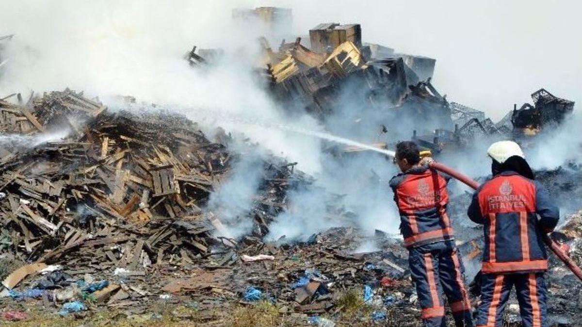 Sultangazi’de boş bir arazide trafo patlamasından çıkan yangında çok sayıda sebze ve meyve kasası kül oldu. Yangının çıktığı alana çok sayıda itfaiye ekibi sevk edilirken, bir helikopter de havadan yangına müdahale etti.Yangın, Sultangazi Cebeci Mahallesi’nde meydana geldi. Edinilen bilgiye göre, trafo patlamasından çıkan yangında boş bir alanda bulunan çok sayıda sebze ve meyve kasası yandı. Yangın bölgesine İstanbul’un farklı ilçelerinden çok sayıda itfaiye ekibi sevk edildi. Yangına helikopterle havadan da müdahale edildi. Olay yerine yakın bir şantiyede bulunan işçiler de yangını söndürmeye çalıştı.Çevrede bulunan bir vatandaş, “Sebze meyve sandığı yanıyor. Gördüğünüz gibi bayağı yandı. Hasar büyük” dedi.Olay yerinde olası bir duruma karşı ambulans bekletilirken, yangın söndürme çalışmaları devam ediyor.