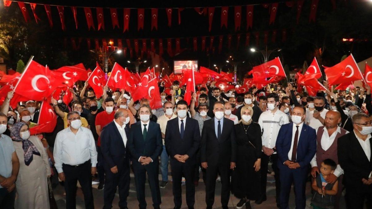 Ziyaretin ardından Kaymakam Kalkar ve Başkan Dursun, 15 Temmuz Demokrasi ve Şehitler Meydanı’ndaki anma programına geçti. Programa siyasi parti temsilcileri, şehit yakınları, gaziler ile çok sayıda vatandaş da katıldı. Meydanda tüm şehitler için mevlit okutuldu. Şehit yakınları ve gazilere plaket veren Başkan Dursun ’Bu millet size minnettardır" dedi.
