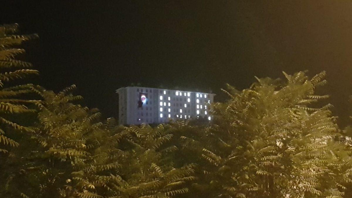 Sungurlu Kredi Yurtlar Kurumu (KYK) yurdunda oda ışıklarıyla pencerelere Azerbaycan’a destek olmak amacıyla AZR yazıldı.