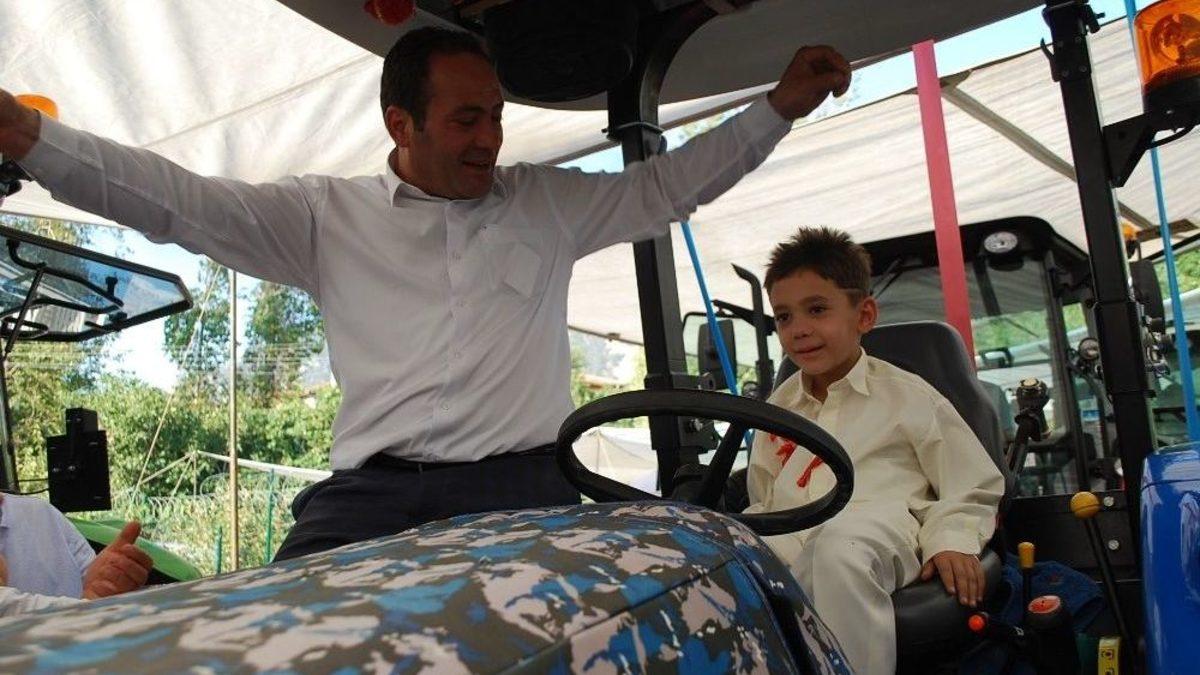 Denizli’nin Pamukkale ilçesinde, sünnet düğünü için bu kez traktörler süslendi. Yaklaşık 10 traktörün eşlik ettiği konvoyda sünnet traktörüne binen Mustafa Ali Sarıkaya, o anları yaşamanın mutluluğunu yaşadı.Denizli’nin Pamukkale ilçesi Cankurtaran Mahallesi Muhtarı Özgür Sarıkaya, 7 yaşındaki oğlunun sünnet düğününde traktör süsleyerek, sünnet arabası yaptı. Arkadaşlarını da toplayan Muhtar Sarıkaya, yaklaşık 10 traktörle sünnet konvoyu oluşturdu. Mahallede tur atan süslü traktör konvoyunu gören vatandaşlar şaşkınlıklarını gizleyemezken, bazıları da o anları cep telefonlarına kaydetti. Drone ile de çekilen traktör konvoyu daha sonra düğün salonuna gitti.Çiftçi bir ailenin çocuğu olan Cankurtaran Mahallesi Muhtarı Özgür Sarıkaya, kendisi de çiftçilik ile uğraşmaya devam ettiğini ve böyle bir hayalinin olduğunu belirterek "Hayalimizi gerçekleştirmenin mutluluğunu yaşadık. Ben çiftçi çocuğuyum, çiftçilik ile hayatımızı devam ettiriyoruz. Aynı zamanda mahallemizin muhtarıyım. Yöresel bir anı olarak hatırlatmasını istedim. Cankurtaran Mahallemizin Yörük geçmişi olmasından dolayı bu bir hayalimdi. Katılan eş, dost ve akrabalara teşekkür ediyorum" dedi.Sünnet olan 7 yaşındaki Mustafa Ali Hacı Sarıkaya ise, çok mutlu olduğunu belirtirken, havadan çekilen traktör konvoyunun görüntüsü de renkli görüntülere sahne oldu.