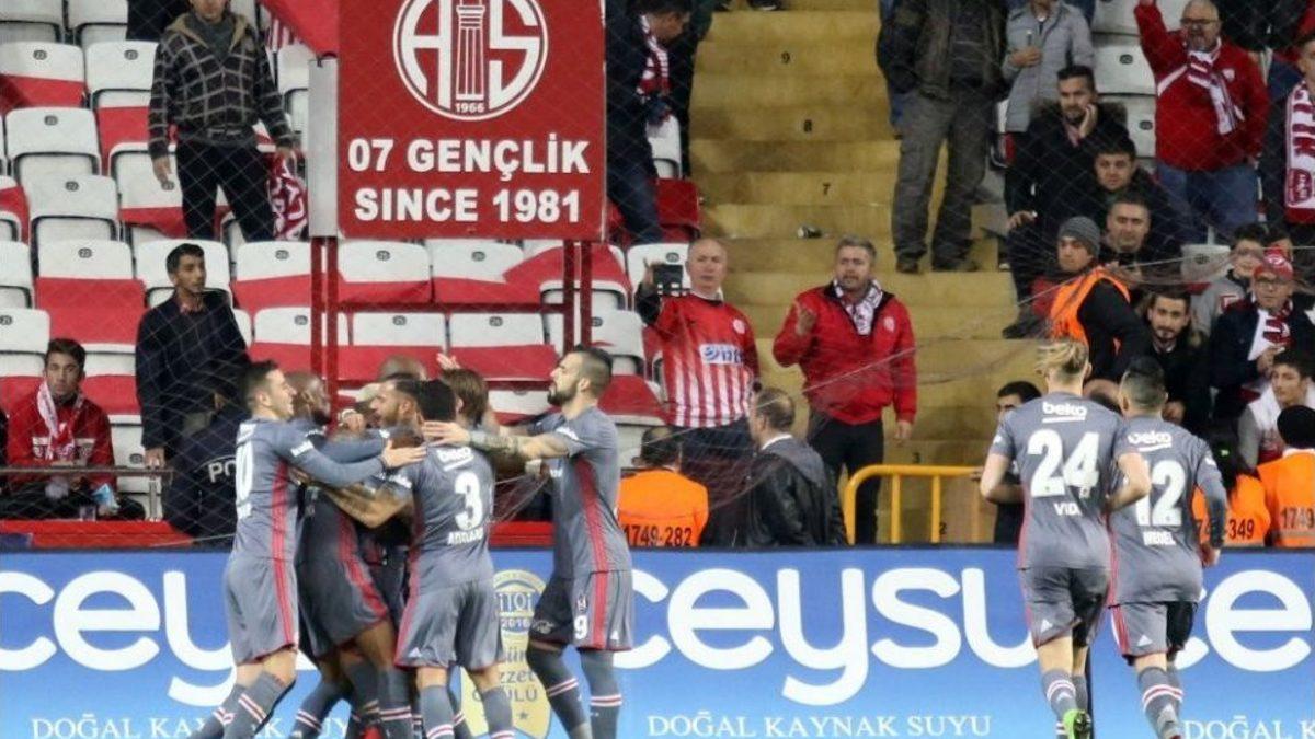 Süper Lig’in 18. haftasında Antalyaspor, sahasında ağırladığı Beşiktaş’a 2-1 mağlup oldu.Maçtan dakikalar (İkinci yarı)47. dakikada orta alandan Charles’in uzun pasında ceza sahası içinde topla buluşan Emre Güral’ın şutunu kaleci çeldi. Dönen topla tekrar buluşan Emre Güral’ın altıpasın hemen sağından kaleye gönderdiği şut üst direğe çarparak auta çıktı.50. dakikada orta alandan hızla topla ilerleyen El Kabir pasını sağ kanattan ceza sahasına giren Deniz Kadah’a bıraktı. Bu futbolcunun yerden şutu az farkla yandan auta gitti.54. dakikada Oğuzhan’ın topuk pasında penaltı noktası üzerinde topla buluşan Talisca’nın şutunu kaleci çeldi. Dönen topla ceza sahası sağ çaprazında buluşan Quaresma’nın ortasında arka direkte Talisca kafayla meşin yuvarlağı ağlara gönderdi. 1-283. dakikada Tolgay Aslan’ın ceza sahası dışından sert şutu az farkla üstten auta gitti.85. dakikada ceza sahası dışında kazanılan serbest vuruşta Diego’nun sert şutu kalecide kaldı.89. dakikada ceza sahası çaprazında topla buluşan Quaresma’nın yerden sert şutu uzak kale direği dibinden auta gitti.90+3. dakikada Talisca’nın ceza yayı üzerinden sert şutunu kaleci parmaklarının ucuyla son anda kornere çeldi.Stat: AntalyaHakemler: Halis Özkahya xx, Mustafa Emre Eyisoy x, Kemal Yılmaz xAntalyaspor: Ferhat Kaplan x, Celustka x, Musa Nizam x (Sakıb Aytaç dk. 60 x), Diego x, Nazim Sangare x, Danilo x (Chico dk. 84 ?), Charles xx, Emre Güral x, El Kabir x (Harun Alpsoy dk. 79 x), Zeki Yıldırım x, Deniz Kadah xYedekler: Ozan Evrim Özenç, Jorge Boffin, Yusuf Çelik, Oğuzhan Kolak, Hamdi Tayfun YılmazTeknik Direktör: Hamza HamzaoğluBeşiktaş: Fabri x, Medel xx, Vida xxx, Adriano xx, Caner Erkin xx (Gökhan Gönül dk.77 x) Atiba xxx, Babel xx (Lens dk. 83 ?), Talisca xxxx, Oğuzhan Özyakup xx (Tolgay Arslan dk. 70 xx), Quaresma xxx, Negredo xYedekler: Tolga Zengin, Mitrovic, Mustafa Pektemek, Fatih Aksoy, Necip Uysal, Utku YuvakuranTeknik Direktör: Şenol GüneşGoller: Charles (dk. 8) (Antalyaspor), Talisca (dk. 30 ve 54) (Beşiktaş)Sarı kartlar: Danilo, Charles (Antalyaspor), Caner Erkin (Beşiktaş)