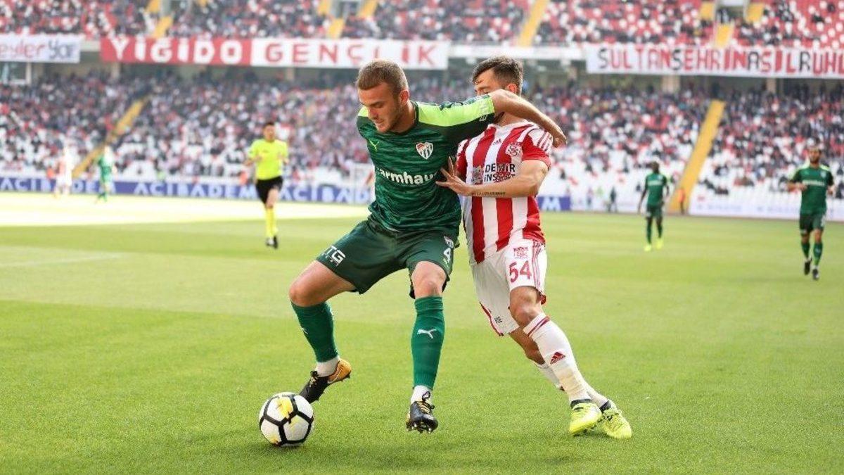 Süper Lig’in 9. haftasında Sivasspor sahasında Bursaspor’u ağırlıyor. Karşılaşmanın ilk yarısı golsüz sona erdi.Maçtan dakikalar (ilk yarı)11. dakikada Rybalka’nın ile sol kanattan kullandığı serbest vuruşta ceza alanı içine ortasında Hakan Arslan’ın kafa vuruşunu kaleci Harun uzanarak çelmeyi başardı.29. dakikada Batalla’nın sol kanattan kullandığı köşe vuruşunda Delarge altıpasın hemen gerisinden yaptığı kafa vuruşunda top az farkla kale direğinin yanından auta çıktı.41. dakikada sağ kanattan Auremir’in ortasında ceza sahası içinde Rybalka’nın kafa vuruşunda top az farkla yandan dışarı gitti.Stat: Yeni 4 EylülHakemler: Yaşar Kemal Uğurlu xx, Serkan Olguncan xx, Serkan Çimen xxDemir Grup Sivasspor: Rochet xx, Auremir xx, Dyakov xx, Bjarsmyr xx Ziya xx, Hakan Arslan xx, Rybalka xx, Medjani xx, Emre xx, Bifouma xx, Kone xxYedekler: Tolgahan, Galip, Mert Hakan, Muhammet, Ergin, İbrahim, Hakan Bilgiç, Rıdvan, Cem, CyriacTeknik Direktör: Samet AybabaBursaspor: Harun xx, Barış xx, Ertuğrul xx, Ekong xx, Aziz Behich xx, Agu xx, Jorguera xx, Christian xx, Delarge xx, Batalla xx, Stancu xxYedekler: Muhammed, Merter, Deniz, Sinan, Faty, Furkan, Kubilay, İsmail, Yusuf, AttaTeknik Direktör: Paul Le GuenSarı kart: Batalla (Bursaspor)