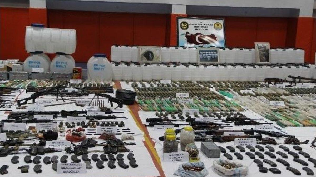 Diyarbakır’ın Sur ilçesinde gerçekleştirilen operasyonlarda terör örgütü PKK’ya bir darbe daha vuruldu. Operasyonda, aralarında bir zırh delici silahın da bulunduğu onlarca silah, yüzlerce patlayıcı ve birlerce mermi ele geçirildi.Diyarbakır Emniyet Müdürlüğü’nce, sokağa çıkma yasağının 59’uncu gününde sürdüğü Sur ilçesinde önceki gün yasak kapsamına alınan Melikahmet Paşa, Gazi ve Turistik caddeleri arasındaki bölgede gerçekleştirilen operasyonlarda ele geçirilen silah ve mühimmatlar kamuoyuna teşhir edilerek, konuya ilişkin yazılı açıklama yapıldı. Söz konusu bölgede bulunan 4 eve operasyon yapıldığına dikkat çekilen açıklamada, “Operasyonda, bir adet Zagros marka zırh delici uzun namlulu silah, 3 adet bixi, 45 Kaleşnikof ve 215 şarjörü, 2 Kanas ve 4 şarjörü, 5 M16, 2 M4 ve 3 şarjör, bir adet kırma tüfek, 9 adet roketatar, bir adet RPG-7, 129 adet anti tank roketatar mühimmatı, 41 adet anti personel roketatar mühimmatı, 235 adet roketatar sevk motoru, 126 adet el bombası, 16 el yapımı patlayıcı, 26 adet pim bloğu olmayan el bombası gövdesi, 44 adet el bombası fünye grubu, 4 bin 470 adet 7,62 milimetre uzun namlulu silaha ait fişek, 8 adet 12 kalibre av tüfeği fişeği, 13 adet plastik bidonlara hazırlanmış el yapımı bomba, 250 kilogram bomba yapımında kullanılan toz madde, çok sayıda ve çeşitli ebatlarda uzun namlulu silah fişeği, 2 çuval içerisinde bomba yapımında kullanıldığı değerlendirilen kimyasal madde, 67 adet boş metal profil, 195 kilogram hidrojen peroksit, 3 bin kilogram amonyum nitrat, 3 telsiz, 1 kutu torpil, 1 adet büyük branda, çok sayıda sağlık malzemesi ile yaşam malzemeleri ele geçirilmiştir” denildi.Açıklamada, ilçedeki operasyonlarda sokak aralarına kurulan barikat ve kazılan hendeklerin 26’sının temizlendiğine de dikkat çekilerek, tuzaklı 7 el yapımı patlayıcının kontrollü bir şekilde imha edildiği bildirildi.