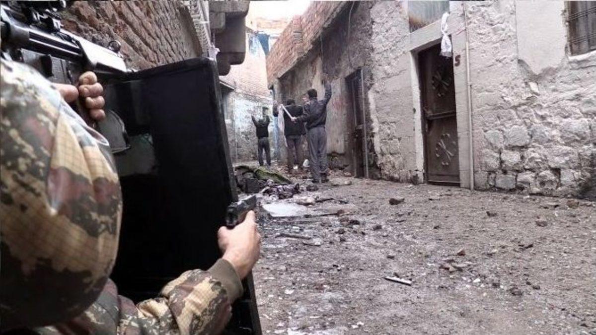 Bölücü terör örgütüne yönelik operasyonların devam ettiği Diyarbakır’ın Sur ilçesinde 3 terörist teslim oldu.Sur ilçesinde güvenlik güçlerinin operasyonları sırasında 3 terörist teslim oldu. Teslim olan teröristlere askerlerin,"Gençler devletin güvencisi altındasınız. Bize emanetsiniz. Size kimse zarar vermeyecek" sözleri dikkat çekti.Bir terörist teslim olma gerekçesini, "İnsanları zor durumda bıraktık, pişman olduk, devlete teslim olmaya karar verdik" diyerek açıkladı. Teröristlerin tarihi binalara verdiği zarar da gözler önüne serildi.