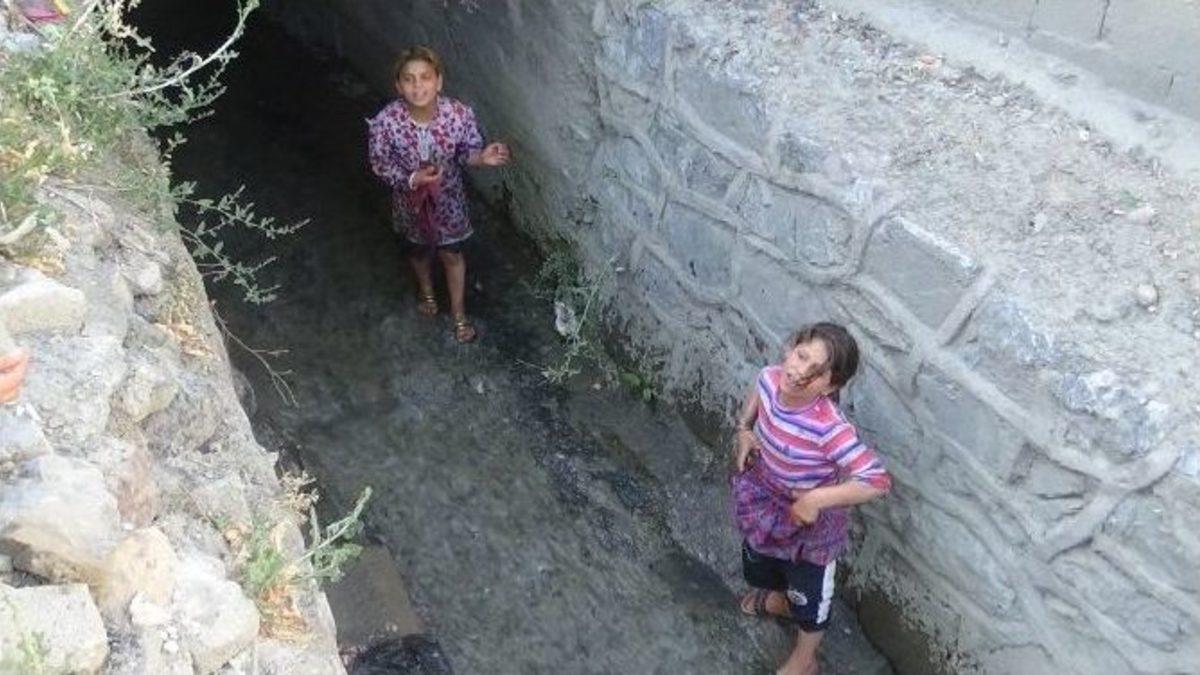 Suriye’deki iç savaştan kaçıp Hakkari’ye sığınan ve aileleri ile birlikte dilencilik yapan iki küçük kız çocuğu çareyi dereye girerek serinlemekte buldu.Suriye’deki iç savaştan kaçıp Hakkari’ye sığınan Suriye uyruklu iki küçük kız sıcaklardan bunaldıkları için çareyi dereye girmekte buldu. Mahalle sakinleri ve yoldan geçen vatandaşların şaşkın bakışları arasında derede serinleyen çocukların hallerinden gayet memnun oldukları gözlendi. Suriye uyruklu küçük kızları derede gören akranları suyun pis olduğunu dereden çıkmalarını istemelerine rağmen oynamaya devam ettiler. Mahallelinin ve yoldan geçen vatandaşların şaşkın bakışları arasında derede serinlenen küçük kızlar korkarak dere yatağında bulunan köprünün altına saklandılar. Dere yatağının içinde oynayan iki küçük kızı gören yaşıtları derenin pis olduğunu söylemelerine rağmen aldırış etmeden eğlenmeye devam ettiler. Kameralara konuşan iki Suriye’li kız, Suriye’nin Halep şehrinden geldiklerini ifade ederek suyun pis olmadığını söylediler.