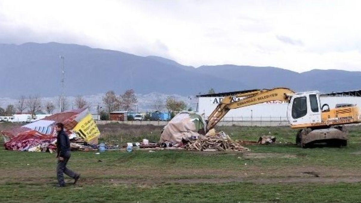 Bursa’da korsan çadırkentte yaşayan Suriyeli mülteciler, çevik kuvvet operasyonu ile Osmaniye’ye gönderildi. Mültecilerin, yaklaşan kış şartları ve soğuk havada yaşanacak olumsuzluk sebebiyle mülteci kampına gönderildiği öğrenildi.Suriye’deki iç savaş nedeniyle iltica ederek Bursa’ya gelen ve Panayır Mahallesi kurban pazarı alanında kurdukları çadır kentlerden yaşayan Suriyeli mülteciler sabah saatlerinde düzenlenen operasyonda Osmaniye’deki mülteci kampına gönderildi. Sabahın ilk saatlerinde 300’e yakın polisin katılımıyla operasyon yapıldı. Çevik Kuvvet ekiplerininde destek verdiği operasyonda 80’ e yakın Suriyeli mülteci 3 otobüse bindirilerek Osmaniye’deki mülteci kampına gönderildi. Ailelerin kurduğu çadırlar, kepçe ve dozer tarafından yıkıldı. Ardından belediye ekipleri çadır kente gelerek temizlik yaptı.YÜKLERİNİ ÇEVİK KUVVET EKİPLERİ TAŞIDISabah saatlerinde yapılan operasyonla 80’e yakın Suriyeli mülteci 3 otobüse bindirilerek Osmaniye’deki mülteci kampına gönderildi. Osmaniye’ye gitmek istemeyen mültecilerle, polis ekipleri arasında zaman zaman gerginlik yaşandı.Öte yandan çadır kente gelen çevik kuvvet ekiplerinin, mültecilerin yük ve eşyalarını otobüse kadar taşıması dikkatlerden kaçmadı. Küçük yaştaki mülteci çocuklar renkli görüntüler oluştururken bir çocuğun elindeki canlı tavuğunu da yanına alması kameralara yansıdı.