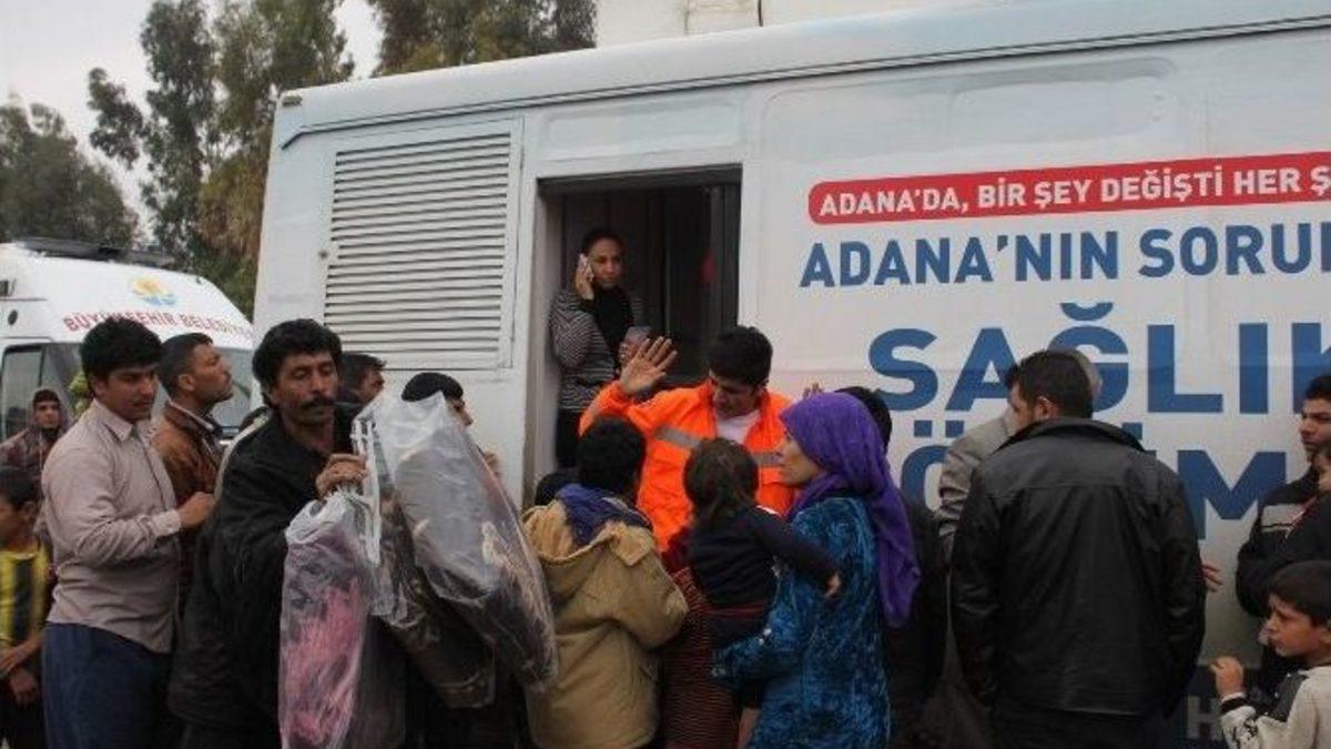 Adana Büyükşehir Belediyesi Sağlık İşleri Daire Başkanlığı’nca, Suriyeli bebeğin öldüğü çadırın bulunduğu bölgede çocuklar sağlık taramasından geçirildi, hasta olanlar için ilaç dağıtımı yapıldı, hastaneye gitmesi gerekenler ambulanslarla taşındı.Çok zor koşullarda hayata tutunmaya çalışan ailelerden 3 çocuklu Garip ve Şadiye Halef çiftinin 57 günlük bebeği Yasmin, 27 Aralık 2014 Cumartesi günü soğuk nedeniyle hastalanıp vefat etmişti. Yasmin’in ölümü sonrası harekete geçen Büyükşehir Belediyesi Sağlık İşleri Dairesi, 2 ambulans, 1 gezicisi sağlık otobüsü, 3 hekim, 4 hemşire ve sağlık memurundan oluşan ekiple çadırlardaki çocukları sağlık kontrolünden geçirip, hasta olanların ilaçlarını temin etti.Hastaneye gitmesi gerekenler ise ambulanslarla taşındı. Sağlık konusundaki acil durumlar için de iletişim numaralarını bıraktı.Çalışmalara katılan Daire Başkanı Opr. Dr. Fatih Karayandı, uzun süredir savaş mağduru insanlarla ilgili faaliyetlerde bulunduklarını söyledi. Özellikle Kerkük bölgesine ilaç götürdüklerini ve Adana’daki Suriyeli mültecileri ASKİ’nin tesislerinde misafir ettiklerini anlatan Karayandı, "Onlara ev, iş bulmaya çalışıyoruz" dedi.Suriyeli sığınmacıların içler acısı bir halde hayatını sürdürdüğüne dikkat çeken Karayandı, "Burası bir insanın sağlıklı yaşayamayacağı bir bölge. Karınca misali nasıl yardımcı olabiliriz, diye buraya geldik. Burada tedavi olabileceklere gereken işlemler yapılacak, ilaçlarını alacağız. Daha kötü durumda olanları ise hastanelere götüreceğiz. Çocuklar üşümesin diye bir miktar battaniye dağıttık" şeklinde konuştu.