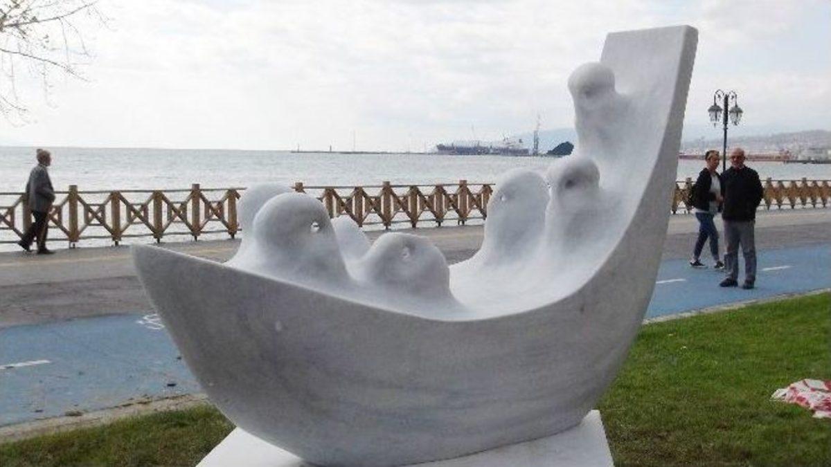 Bulgaristan’da Cumhurbaşkanı adayı olan Velislav Minekov, Suriyelilerin acılarını konu alarak yaptığı ‘Alın yazısı’ heykeli Tekirdağ’ın merkezine konuldu.Süleymanpaşa Belediyesi tarafından düzenlenen 2. Uluslararası Bisante Heykel Sempozyumunda yapımı tamamlanan heykeller kentin farklı noktalarına konulmaya başlandı. Dünyanın 4 bir yanından 400 heykel içerisinden seçilip Tekirdağ’a gelen 8 heykeltıraş içerisinden bulunan Bulgaristan Cumhurbaşkanı adayı Velislav Minekov’da, daha önce Yunanistan’da bir seyahat sırasında Suriyeli bir gruba denk geldiğini ve onların perişan halde olduğunu gördüğünü ifade ederek yapacağı heykeli Suriyelilerin trajedisi üzerine olacağına karar vermişti. Daha sonra yapımı tamamlanan heykeller kentin farklı önemli noktalarına konulurken, Velislav Minekov’un yaptığı Alın yazısı heykeli de Tekirdağ’ın merkezi olan Sahil Şeridinde bulunan Marina’da park alanına konuldu.Sempozyumda Küratör olan Nermin Sözel, bugün burada sempozyumda yapılan 4 heykeli planladıkları yere koyduklarını ifade ederek, “Bu heykel, Bulgar Sanatçımız Velislav Minekov’un çalışmasıdır. Marina’yı tercih ettik. Çünkü, sanatçımız bu çalışmayı tasarlarken, Suriyelilerin trajedisinden çok etkilendiğini söyledi ve çalışmayı bu yönde gerçekleştirdi. Bu heykelimizde diğerleri gibi Tekirdağ’ın en güzel yerinde vatandaşlarla buluşacak. Bizim bu sempozyumun teması barıştı. Biliyorsunuz şu anda savaşın olduğu bir coğrafyada savaşıyoruz. Suriyeli göçmenler iki senedir büyük bir trajedi yaşıyorlar. Bu çeşitli bölgelerde Marmara’da olsun Ege’de olsun, İstanbul’da İzmir’de Türkiye’nin çeşitli yerlerinde o göçmenlerin trajedisiyle karşı karşıya kalıyoruz. Sempozyumun teması da barış olunca, bütün dünyada barış isteğiyle bütün sanatçılar heykellerini bu kapsamda gerçekleştirdiler. Şu anda bir barış sağlanmış değil ama bütün dünya halklarının isteği bir an önce barışın gerçekleşmesidir” dedi.‘Alın Yazısı’ heykelini gören vatandaşlar, heykelle selfie çekildi.