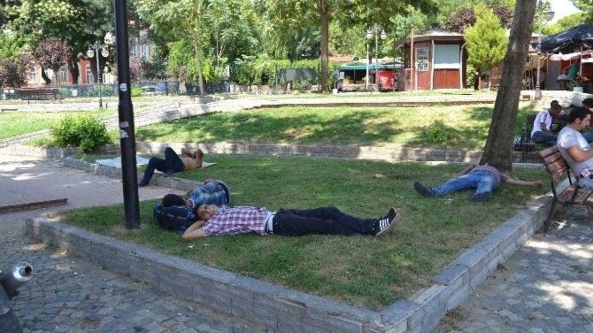 Edirne’de Suriyeliler, havanın 35 dereceyi bulmasıyla zamanlarını camilerde ve parklarda ağaç gölgelerinde yatarak geçirmeye başladı.En çok Eski Camii’yi tercih eden, aynı zamanda şehir merkezinde bulunan yeşil alanlardaki ağaç gölgelerinde sıcakla imtihan veren Suriyelilerin tek hayali Avrupa’ya göç etmek.Edirne yaklaşık bir haftadır sıcak havayla boğuşuyor. İnsanlar gün boyu serin yerler keşfederken ülkelerindeki savaşlardan kaçan Suriyeliler ise sıcak havada Eski Camii’de vakit geçiriyorlar. Çocuklarıyla caminin bahçesinde oturan ve caminin içinde yatan Suriyeliler, sıcak havadan korunmaya çalışıyor.DÖNERCİLER 50 DERECEYİ GÖRDÜDöner ustaları ise ocağın karşısında yaklaşık 10 saat mesai yaparak adeta sıcakla imtihan veriyor. Dönerci dükkanlarında sıcaklık yaklaşık 50 dereceyi buluyor. Öğlen saat 12.00 gibi döner kesmeye başlayan döner ustaları, gün boyunca ocağın karşısında mesai yaparak sıcak havada zor anlar yaşıyorlar.Gökhan Bülbül isimli döner ustası dükkanın sıcaklığının gün içinde 50 dereceyi bulduğunu belirtirken, “Sıcak havalarda çalışmak çok zor. Terim hiç kurumuyor. Ocağın başından ayrılamıyorum. Ayakta ve ocağın karşısında öğlen 12’den akşam 9’a kadar duruyorum. Gün boyu soğuk su içiyorum. Anca kendime geliyorum. Sıcaklar böyle devam ederse çalışmam daha da güç olacak” dedi.“SICAK DEVAM ETSİN”Sıcak hava bazı sektörlerde çalışanları olumsuz etkilerken, klima ve vantilatör satanları ise olumlu yönde etkiledi. Vantilatör ve klima satanların satışları arttı. Özellikle elden taksit yapan iş yerlerinde vantilatör ve klima kalmadı. Sıcaktan dolayı vantilatör ve klima satışlarının bir hayli arttığını belirten Mustafa Ağış, “Havalardan dolayı günlük klima ve vantilatör satışlarımız arttı. Vantilatör biraz daha uygun fiyatlı olduğu için daha çok talep gördü. Havalardaki sıcaklık biraz azaldığı zaman satışlarımızda duruyor. Sıcaklar devam etsin” diye konuştu.