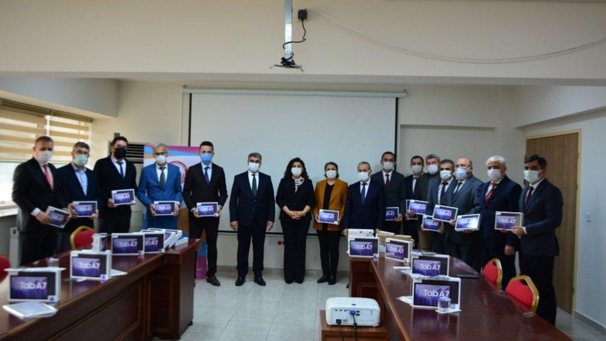 Millî Eğitim Bakanlığı (MEB) tarafından ailelerin gelir durumu, okul çağındaki kardeş sayısı, özel eğitim gereksinimi, öğrencinin akademik başarısı gibi kriterler doğrultusunda resmi veriler üzerinden Bakanlıkça hazırlanan strateji çerçevesinde dağıtımları gerçekleştirilecek olan 700 tablet, hafıza kartı ve internet bağlantısı sağlayacak sim kartı öğrencilerimize dağıtılmak üzere okul müdürlerimize teslim edildi.