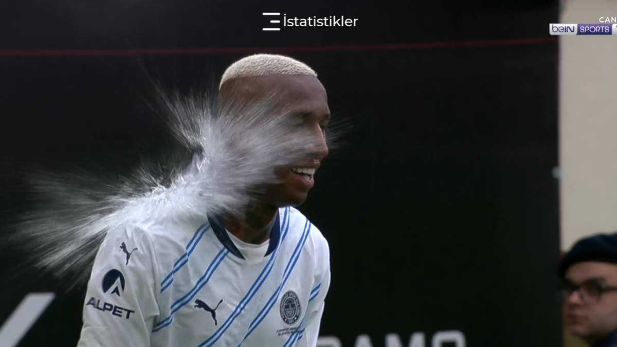 Attığı golün ardından köşe bayrağına koşan Talisca gol sevincinin ardından tribünlerden atılan bir yabancı madde ile bir anda yere yığıldı.