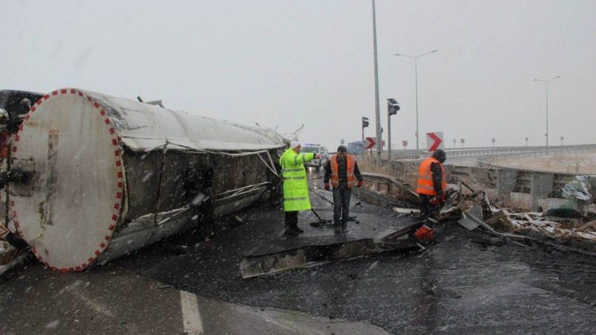 Sivas’ta sıcak asfalt yüklü tankerin devrilmesi sonucu yola dökülen yaklaşık 15 ton sıcak asfalt soğuk havanın etkisiyle dondu.Kaza saat 13.00 sıralarında Sivas-Malatya karayolu Kovalı Kavşağı’nda meydana geldi. Ankara’dan Sivas’a gelen 61 yaşındaki Mehmet Özer B. idaresindeki 06 BE 9179 plakalı sıcak asfalt yüklü tanker, sürücüsünün uyuması sonucu bariyerlere çarptıktan sonra karşı şeride geçerek devrildi. Kazanın ihbar edilmesinin ardından olay yerine 112 sağlık, jandarma ve polis ekibi sevk edildi. Kazada yaralanan sürücü, olay yerinde yapılan ilk müdahalesinin ardından ambulansla Cumhuriyet Üniversitesi Tıp Fakültesi Araştırma ve Uygulama Hastanesi’ne kaldırılarak tedavi altına alındı. Yaralının sağlık durumunun iyi olduğu öğrenildi. Kaza sonrası tankerin içerisinde bulunan yaklaşık 15 ton sıcak asfalt yola aktı. Yola akan asfalt soğuk havanın etkisiyle kısa sürede dondu. Karayolları temizlik ekipleri yola dökülen asfaltı temizlemek için çalışma başlattı.