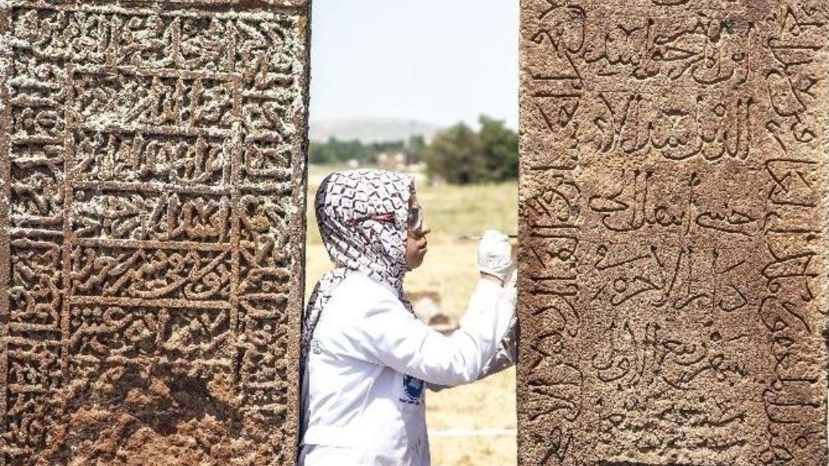 Bitlis’in Ahlat ilçesinde bulunan tarihi Selçuklu Mezarlığı’nda liken temizliği yapılıyor.Mezar taşları üzerinde temizlik çalışmaları yapan kazı ekibindeki restoratörler, giydikleri beyaz önlük ve eldivenleriyle adeta birer doktoru andırıyor. Her bir tarihi eser için ne kadar titiz bir çalışma yapıldığını ise tamamlanan çalışmalarının güzelliğiyle gözler önüne seriliyor. Dünyanın en büyük İslam Mezarlığı olan ve Anadolu’nun Orhun Abideleri olarak da nitelendirilen Ahlat Selçuklu Meydan Mezarlığı’nda taşlar büyük bir özenle temizleniyor. Oldukça hassas, teknik ve bir o kadar da sabırla temizlenen mezar taşları, gelecek kuşaklara kazandırılmaya çalışılıyor. Buradaki temizlik çalışması sadece mezar taşlarının okunabilmesi için değil, likenlerin taşa verdiği zararı ortadan kaldırmak amacıyla da yapılıyor. Boyları 4 metreyi aşan, üzerindeki yazı ve şekillerle her biri sanat eseri niteliği taşıyan mezar taşlarını bünyesinde barındıran tarihi Selçuklu Mezarlığı’ndaki çalışmalar, Eski Ahlat Şehri kazıları Van Yüzüncü Yıl Üniversitesi (YYÜ) Sanat Tarihi Bölümü Başkanı Prof. Dr. Recai Karahan Başkanlığında yürütülüyor.Mezarlıktaki çalışmalar hakkında açıklamalarda bulunan Prof.Dr.Recai Karahan, mezar taşlarının temizliğini yaparken herhangi bir madde kullanmadıklarını söyledi. Karahan, mezar taşlarının temizliğini titizlik içerisinde yaptıklarına da değinerek, “Selçuklu Meydan Mezarlığı’mızda nitelikli olarak diyebileceğimiz yani okunabilecek, likenleri temizlenebilecek ve izlenime sunulabilecek bin 800 civarında taş var. Fakat bunun yanında niteliksiz olarak 8 bin civarında mezar taşı bulunuyor. Biz şuanda mezar taşlarının üzerinde neler olduğun dair okuma işlemlerini yaptık. Liken temizliği teknik usullere uygun bir şekilde yapılıyor. Mezar taşlarını temizledikten sonra da bunların ilelebet temiz kalabilmesi için bazı gerekli işlemlerinde daha sonra yapılması gerekmektedir. Şuana kadar 300’e yakın mezar taşı temizlenerek okundular. Bunlar okundukça da çok ilginç detaylar ortaya çıkmaya başladı. Bu nedenle mutlaka liken temizliğinin yapılması gerekiyor. Sadece okumak içinde değil aynı zamanda likenler mezar taşlarını da tahrip etmektedir. Çünkü tüf taşı olduğu için yani volkanik yumuşak bir taş olduğu için zaman içerisinde bunlar tahrip olmaktadır. Bunları önlemeye çalışıyoruz. Tabi bu işlemleri yaparken de son derece dikkatli ve titiz davranıyoruz. Mezar taşları temizlendikten sonra oldukça güzel bir görünüme de kavuşuyor. Mezar taşlarında genel olarak orada meftun olan ve mezar taşını yapan kişilerin isimleri de yer almaktadır. Mezar taşları üzerinde Kur’ani Kerimden ayetler ile hadislerin yanı sıra bazılarında ise Farsça şiirler ortaya çıktı. Bunlardan bazılarında ölen kişi hakkında övücü sözler, bazılarında dünyanın yalan olduğu ve ahirete dair ifadeler yer alıyor” dedi."YAPILAN ÇALIŞMALAR SABIR İŞİDİR"Çalışmalara hızlı şekilde devam ettiklerini vurgulayan Prof. Dr. Recai Karahan, “Tam anlamıyla iğneyle kuyu kazmaya çalışıyoruz. Sabırlı olmak gerekiyor. Zaman içerisinde pek çok şeyin ortaya çıkacağını hiç tahmin etmediğimiz bilgilerin ortaya çıkacağını umuyorum. Bu bir sabır işidir. Bunlarında artık yavaş yavaş kitaplara ve yazılı belgelere aktarılması gerekiyor. Bizde bunlara başlamış durumdayız. Şuana kadar 200-300 civarında mezar taşı üzerinde liken temizliği yapıldı. 300 civarında mezar taşı okundu. 350’ye yakında mezar taşı düzeltildi. Burada ki taşların hemen hemen hepsi eğri vaziyetteydi. Bunlarda zaman içerisinde ağırlık merkezleri kaydığı için yıkılıyor. Böylece hem bozuluyor hem de restorasyonu çok daha pahalıya mal oluyor. Hiçbir madde kullanmadan Ahlat taşıyla besleyerek taşları düzeltip teraziye alıyoruz. Çalışmalarımıza hızlı bir şekilde de devam ediyoruz. Geçmiş yıllara göre ziyaretçi sayısında artış yaşandığı gözlemleniyor. Buraya gelen yerli ve yabancı turistlere kazı ekibimizde bulunan arkadaşlarımızda yardımcı olarak açıklamalarda bulunuyorlar. Bu sayede ilçeden ayrılan turistlere Selçuklu Meydan Mezarlığı’nı daha iyi anlatmaları sağlanıyor” diye konuştu.