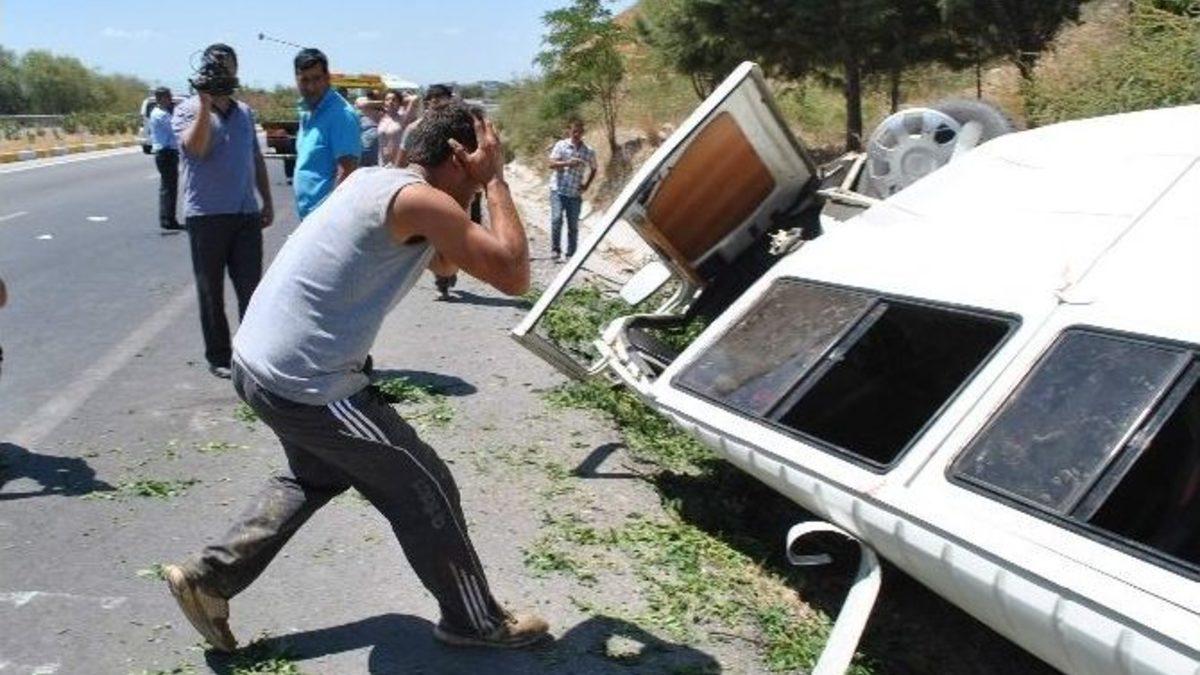 Aydın'da, tarım işçilerini taşıyan bir minibüs kontrolden çıktı. Yol kenarındaki üç ağacı devirerek şarampole yuvarlanan araçta bulunan 21 kişi yaralandı.Kaza, bugün saat 13.30 sıralarında Aydın-Muğla karayolu Savrandere Mahallesi yakınlarında meydana geldi. Edinilen bilgiye göre; Koçarlı'ya bağlı Şenköy Mahallesi’nden sabaha karşı 03.00 sıralarında üç ayrı minibüste Çine Ovası’na domates toplamaya giden tarım işçileri, saat 13.00’de işlerini tamamlayınca dönüşe geçti. Konvoy halinde birbirini takip ederek ilerleyen araçların ortasında bulunan Tolga Cenger’in kullandığı 09 VG 136 plakalı minibüs, Savrandere Mahallesi yakınlarındaki eğimli yolda hızla ilerlerken kontrolden çıktı. Yavaşlayamayan araç, yol kenarındaki 3 adet ağacı devirdikten sonra takla atıp şarampole yuvarlandı.Hurdaya dönen araç içerisinde sıkışan 21 kişinin imdadına ilk önce konvoyda bulunan diğer minibüslerdeki işçi arkadaşları koştu. Can pazarının yaşandığı kazanın haber verilmesi üzerine bölgeye çok sayıda 112 Acil Servis, Aydın Büyükşehir Belediyesi İtfaiye Müdürlüğü, AFAD İl Müdürlüğü ve polis ekibi sevk edildi. Sıkıştıkları araçtan kurtarılan yaralı tarım işçileri Aydın Devlet Hastanesi, Atatürk Devlet Hastanesi ile ADÜ Uygulama ve Araştırma Hastanesi'ne sevk edildi.İŞÇİ ARKADAŞLARI İÇİN GÖZYAŞI DÖKTÜLERKazanın ardından Muğla-Aydın karayolundaki trafik bir süre kontrollü olarak verildi. Çalışmak için Çine Ovası’na gelen ve dönerken kazayı gören diğer tarım işçileri de, yaralılara yardım edebilme ümidiyle minibüsün yanına koştu. Gözyaşları içerisinde aracın içinde birilerinin bulunup bulunmadığına bakan işçiler, yaşadıkları acıyı hurdaya dönen minibüse vurarak gidermeye çalıştı. Sinir krizi geçiren işçileri, polis, itfaiye ve AFAD ekipleri sakinleştirmeye çalıştı.Kazada yaralanan Mehmet Kaba ve eşi Necla Kaba’nın durumunun ağır olduğu öğrenildi. Diğer yaralılar araç sürücüsü Tolga Cenger ile minibüste bulunan tarım işçileri, Zekai Cenger, Erhan Kuşlu, Güler Kuşlu, Emine Kuşlu, Zekai Cenger, İsmail Cenger, Güllü Cenger, Birse Cenger, Nur Ardıç, Gül Civan Ardıç, Mukadder Ardıç, Bahar Kil, Necla Kaman, Altan İnanç, Emine İnanç, Aygün İşli, Güler İşli ve Lale Kaban’ın ise hayati tehlikesinin bulunmadığı bildirildi. Kazayla ilgili soruşturma başlatıldı.