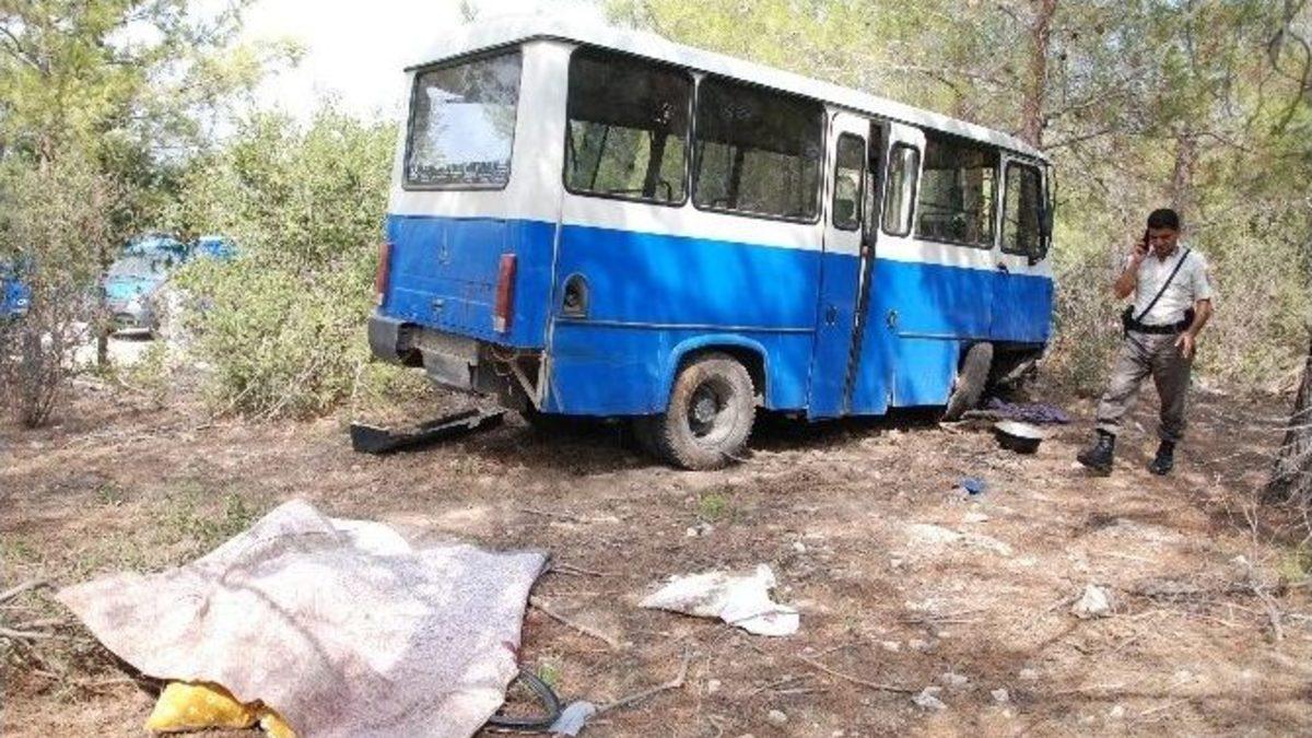 Mersin’in Silifke ilçesinde tarım işçilerini taşıyan minibüs kaza yaptı. Kazada 1 kişi öldü, 6 kişi yaralandı.Edinilen bilgiye göre, Türkmenuşağı Mahallesi’nde sebze toplayan tarım işçilerini taşıyan Ramazan Melekoğlu (56) yönetimindeki 33 KK 384 plakalı minibüs, dönüş yolunda freninin patlaması sonucu Atakent Mahallesi’ndeki ormanlık alana girdi. İddiaya göre aracın süratli olması nedeniyle minibüs, çam ağaçlarına çarparak durabildi. Kazada Ayşe Güler (50) olay yerinde hayatını kaybederken, sürücü Ramazan Melekoğlu, Yurdagül Can (48), Zeliha Yılmaz (41), Fatma Melekoğlu (40), Zeki Ünver (48), Mevlüt Melekoğlu (55) yaralandı. Yaralılar ambulanslarla Silifke Devlet Hastanesi ve Özel Olba Med Hastanesi acil servisine kaldırıldı.Jandarma ekipleri kaza yerinde güvenlik önlemleri alırken, ölen tarım işçisinin cenazesi, savcının yaptığı incelemenin ardından hastane morguna kaldırıldı.Yetkililer kazayla ilgili soruşturmanın devam ettiğini bildirdi.