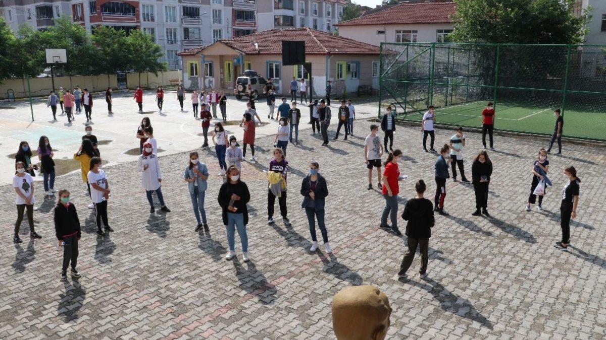 Okul girişlerinde öğrenciler için bulunan dezenfektan ve maskeler öğrencilere dağıtıldı. Bazı öğrencilerin ihtiyaç duyacakları su, dezenfektan ve peçeteyi yanlarında getirdikleri ve çoğunun maskeli oldu gözlemlendi. İlçe Milli Eğitim Müdürü Mustafa Tümer’in yaptığı açıklamada 12 okulda, 37 salonda, 137 görevli öğretmen ile LGS’nin yapılacağını söyledi. Daha sonra Tümer, “Mart ayından bu tarafa 3 aydır okullarınızdan ayrısınız. Olağanüstü bir dönem yaşadık. Bildiğiniz gibi hem dünyanın hem de ülkemizin mazur kaldığı salgın hastalık nedeniyle okullarımız tatil edildi. Daha doğrusu tatil değil, uzak eğitim yaptık. Bakanlığımız farklı metotlar geliştirerek bu süreci gerçekten çok başarılı şekilde atlattık. Belki olağanüstü durumda sınava hazırlandınız. Ama hiçbir zaman konsantrasyonunuzu kaybetmediğinizi biliyoruz. Bakanlığımızda bu yönde çaba gösterdi. Gerek EBA’dan uzaktan eğitim metoduyla gerekse bizzat öğretmenlerimizin canlı ders vermek suretiyle sizleri bu sürece hazırlamaya çalıştık. Hepinize başarılar diliyorum” dedi.