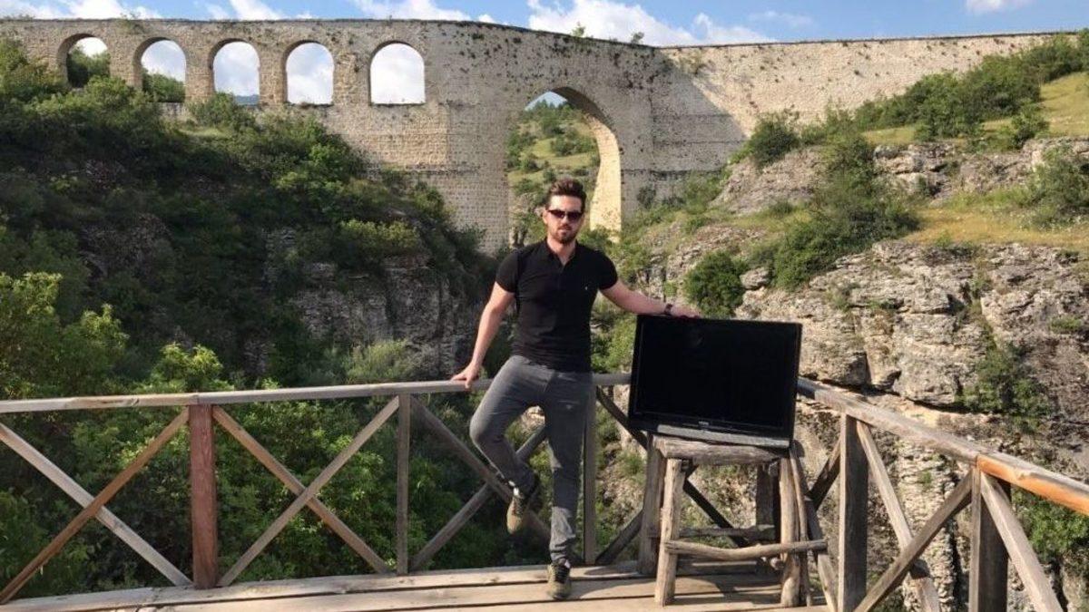 Evine giren hırsızların yeni aldığı ve hala taksitini ödediği televizyonunu çalması üzerine kendine yeni bir TV alan Görkem Güleri, yeni televizyonunu da çaldırma endişesiyle tatile 82 ekran LCD televizyonuyla gidiyor.İstanbul Kartal’da geçtiğimiz yıl tatile çıktığında gündüz vakti evine hırsız giren Görkem Güleri (28), eve döndüğünde gördüğü manzara karşısında neye uğradığını şaşırdı. Eve giren hırsızların evden sadece daha yeni aldığı televizyonunu götürdüklerini gören Güleri, sinir küpüne döndü. Bir yıl önce çalınan televizyonun hala taksitini ödeyen genç, hırsızlık olayını hemen polise haber verdi. Hırsızlara dair hiçbir iz bulunamazken, Görkem Güler evine 82 ekran LCD yeni bir televizyon daha aldı. Hırsızlardan bir kere dili yanan genç, hırsızlara kaptırma endişesi ile artık nereye gitse yeni televizyonunu da yanında götürüyor.Tatile televizyonuyla birlikte çıktıKendisine tatil planı yapan ve İzmir, Manisa ve Safranbolu gezisine çıkan Görkem Güleri, tatile de televizyonu ile birlikte çıktı. Genç, arabasında yanına koyup emniyet kemeriyle bağladığı televizyonunu gittiği şehirlerdeki yerleri gezerken de kucağında taşıdı. Güleri, kafede çayını yudumlarken masanın üstüne koyduğu televizyonunu fotoğraf çekilirken de yanı başına aldı.Eski televizyonunu tatile çıktığında çaldıran Güleri, "Yeni televizyon aldığımda bir daha tatile çıkarsam kesinlikle yanıma alacağım demiştim. Evden çıkarken arkamı döndüm televizyona baktım içim gidiyor, bırakamıyorum. Kaptım televizyonu duvardan çıktım. Bir elimde kız arkadaşım, bir elimde televizyon otogardayız. Kendi kendime yanımdan ayırmayacağımı söyledim, her gittiğim yerde de fotoğraf çekilmeye başladım" dedi.Görenlerin şaşkınlık içinde kaldığını dile getiren Güleri, "İnsanlardan da ’bizi çeker misiniz’ diye rica ettiğim zaman bayağı güldük. Kiminle diyorlar, televizyonu gösteriyorum. İnsanlar birbirlerine bakıyorlar filan. Projemin olduğunu, tez hazırladığımı söyledim. Yoksa ruh hastası sanabilirlerdi" diye konuştu.