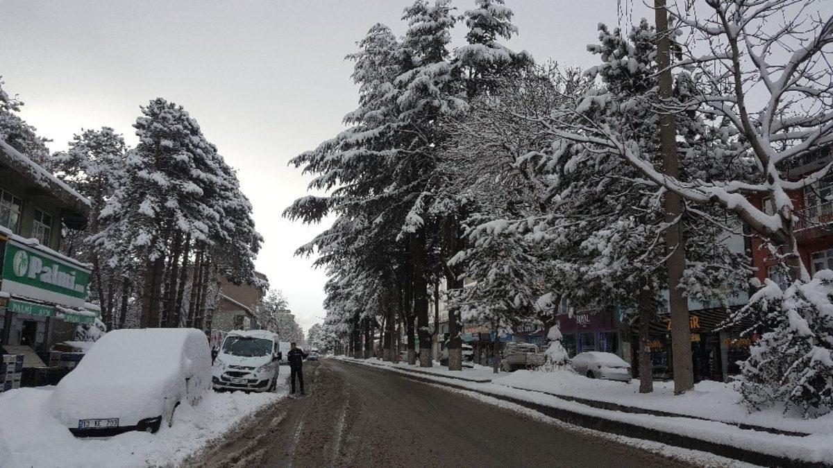 Ev ve araçların karla kaplandığı ilçede, kar yağışının belirli aralıklarla devam edeceği öğrenildi.