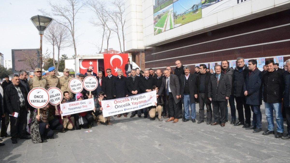 İçişleri Bakanlığı tarafından trafikte yaya önceliği bilincinin oluşturulması ve yaya geçitlerinin kullanımının yaygınlaştırılması amacı başlatılan kampanya kapsamında Bitlis’in Tatvan ilçesinde “Öncelik Hayatın, Öncelik Yayanın” sloganıyla etkinlik düzenlendi.