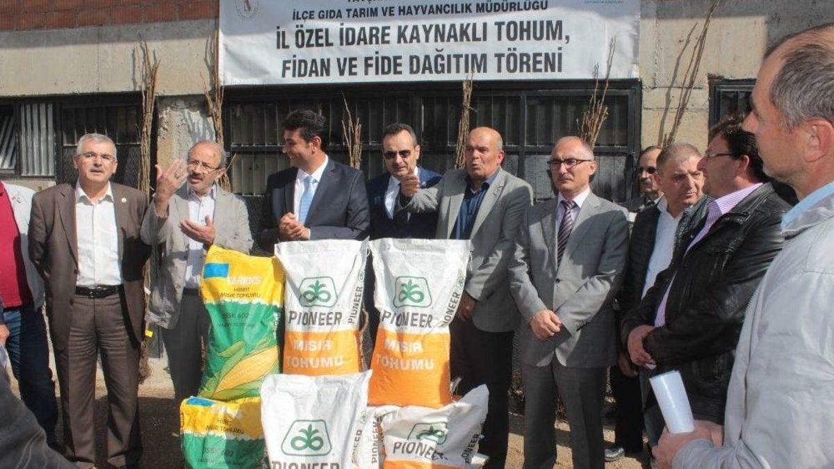 Kütahya İl Özel İdaresi kaynaklı silajlık mısır ve dane mısır tohumu dağıtım töreni Tavşanlı Gıda Tarım ve Hayvancılık Müdürlüğünde gerçekleştirildi.Törene Tavşanlı Kaymakamı Yüksel Kara, Ak Parti ilçe başkanı Nejat Tülek, İlçe Tarım Müdürü Ahmet Temel, Tavşanlı Ziraat Odası Başkanı İsmail Akpınar, İlçe Özel İdare Müdürü Necati Derin, İl Genel Meclisi Üyeleri ve üreticiler katıldı.İlçe Gıda Tarım ve Hayvancılık Müdürü Ahmet Temel, üreticilere bilgilendirmede bulundu.Kaymakam Kara ise," İl Özel idaremizin tarım ve hayvancılık ile ilgili görevleri kapsamında bütçesine koyduğu kaynaktan, tarım ve hayvancılığı geliştirmek için verdiği tohumları ve fideleri vermek için burada bugün program düzenledik. Bugün 155 çiftçimize 5’er dekar alanda dikilmek üzere birer torba hem silajlık mısır tohumu hem de tane mısır tohumu dağıttık. 7 köyde 7 çiftçimize de kişi başı 5 dekar alanda dikimi yapılmak üzere her çiftçimize 80’er adet toplamda 560 adet Fernor çeşidi ceviz fidanı dağıtımı gerçekleştirdik. İlçemizde tarım ve hayvancılığı geliştirmek üzere güzel bir proje. Dağıtımdan çiftçilerimiz son derece memnunlar. Çiftçimize bol kazançlar diliyoruz" dedi.Çardaklı Mahallesinden Mustafa Sevimli ise yıllardır çiftçilik yaptığını ifade ederken, " Devletimizin bize sunduğu bu imkanlardan bize de uygun görüldü. Allah’ım devletimize zeval vermesin. İl ve ilçe Özel idareye, Kaymakamımıza, Belediyemize, Ak Parti İlçe teşkilatına çok teşekkür ederim" dedi. (Tİ - EFE)