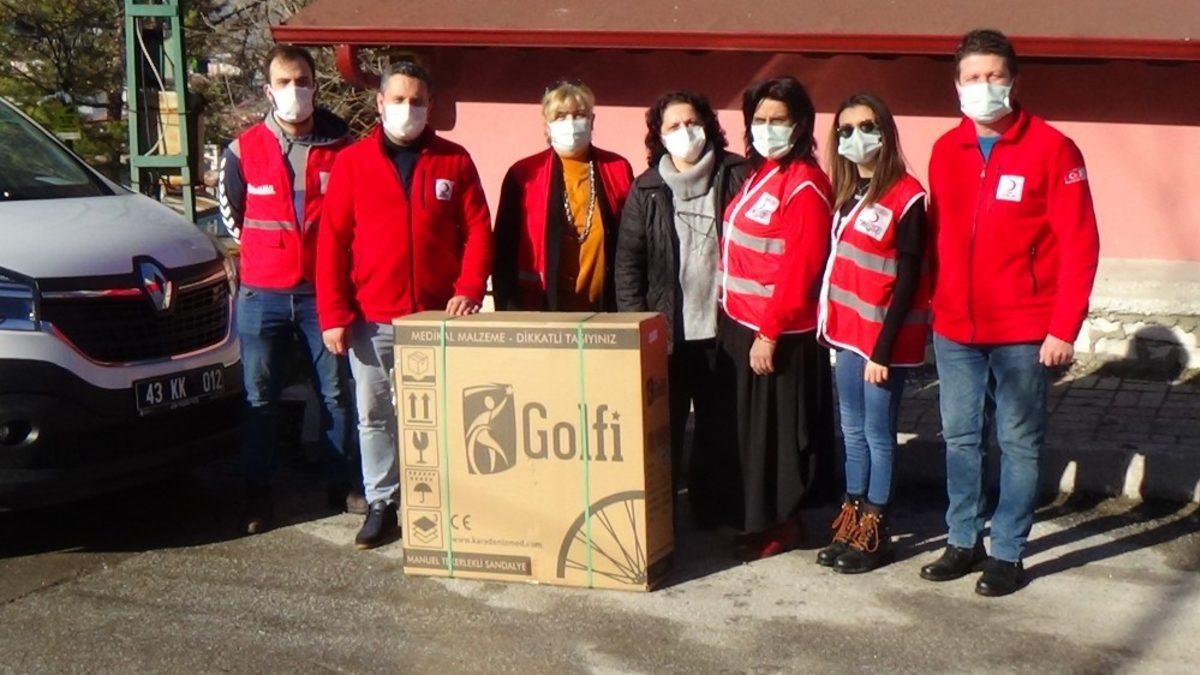 Kızılay Kütahya Kolları Başkanlığı, eşi için tekerlekli sandalye talebinde bulunan vatandaşın isteğini yerine getirdi. Vacide Erbay tarafından bağışlanan tekerlekli sandalye, Kızılay Kütahya Şube Başkanı Talha Tekin ve Kadın Kolları Başkanı Semra Sarıışık Tozaraydın tarafından ihtiyaç sahibi aileye teslim edildi.