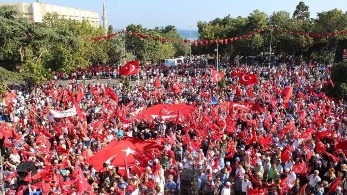 Tekirdağ’daki Demokrasi ve Şehitler Mitingine katılan AK Parti Genel Başkan Yardımcısı Dr. Mehmet Müezzinoğlu, "Büyük millet olmanın ne olduğunu hainlere gösterdik" dedi.Cumhurbaşkanlığı tarafından İstanbul Yenikapı’da düzenlenen ‘Demokrasi ve Şehitler Mitingi’, Tekirdağ’da da Valilik öncülüğünde, AK Parti Genel Başkan Yardımcısı Mehmet Müezzinoğlu, Tekirdağ Valisi Mehmet Ceylan, Tekirdağ Büyükşehir Belediye Başkanı Kadir Albayrak, AK Parti Tekirdağ Milletvekilleri Mustafa Yel, Ayşe Doğan, Metin Akgün, TBMM Divan Üyesi CHP Milletvekili Emre Köprülü, Süleymanpaşa Belediye Başkanı Ekrem Eşkinat, Namık Kemal Üniversitesi Rektörü Prof. Dr. Osman Şimşek, Tekirdağ Ticaret ve Sanayi Odası Başkanı Cengiz Günay, AK Parti Tekirdağ İl Başkanı Cüneyt Yüksel’in yanı sıra Tekirdağ ve ilçelerinden binlerce vatandaşın katılımıyla başladı.Tekirdağ Valilik önünde gerçekleşen Demokrasi ve Şehitler Mitingine katılan AK Parti Genel Başkan Yardımcısı Dr. Mehmet Müezzinoğlu burada vatandaşlara seslendi. Müezzinoğlu, "Büyük millet olmanın ne olduğunu düşmana, hainlere, kalleşlere, alçaklara büyük millet olmanın ne olduğunu çocuklarımızla, kadınlarımızla, gençlerimizle, engellilerimizle, hasta yatağında yatan yaralı gazilerimizle hep beraber gösterdik. Bizden korkmaya devam etsinler. Değerli kardeşlerim büyük önder Mustafa Kemal Atatürk bize miras olarak bu vatanı bıraktı. Allah’a şükürler olsun ki vatana sımsıkı sahip çıkmanın ne olduğunu dünya aleme hep beraber gösterdik. 239 şehidimizin hak ve hukukunu koruyabilmeyi Rabbim bizlere nasip etsin. 2 bin 100’ün üzerinde gazi yaralımıza Rabbimden acil şifalar diliyorum" dedi.Tekirdağ Valisi Mehmet Ceylan da, 15 Temmuz akşamı asker kıyafeti giymiş teröristler tarafından ülkede milli iradeye, demokrasiye bir darbe girişiminde bulunulduğunu belirtti. Ceylan, "Ancak bu darbe girişimi, başta Başkumandanımız olmak üzere, meclisimizle, Tüm siyasi partilerimizle, vatanına milletine bağlı silahlı kuvvetlerimizle, polisimizle tabi ki siz değerli vatandaşlarımızla bu darbe girişimini 16 Temmuz sabahında püskürtülmüştür" diye konuştu."Farklı partilerde olabiliriz. Ama ortak paydamız, Ay Yıldızlı Türk Bayrağımızdır"TBMM Divan Üyesi CHP Milletvekili Emre Köprülü yaptığı konuşmada, "Bizler birbirimizden farklı düşünebilir. Farklı partilerde olabiliriz. Ama ortak paydamız, Ay Yıldızlı Türk Bayrağımızdır. Ortak paydamız, bu vatanın birliği ve bütünlüğüdür. Ortak paydamız, Mustafa Kemal Atatürk’ün Cumhuriyetidir. Ortak paydamız, demokrasimizdir ve özgürlüğümüzdür" diye konuştu.Konuşmaların ardından, Türk bayraklarıyla Tekirdağ Valiliği önünde Demokrasi ve Şehitler Mitingine katılan yaklaşık on bin vatandaş, İstanbul Yenikapı Miting alanında gerçekleştirilen mitingi canlı bağlantı ile izledi.