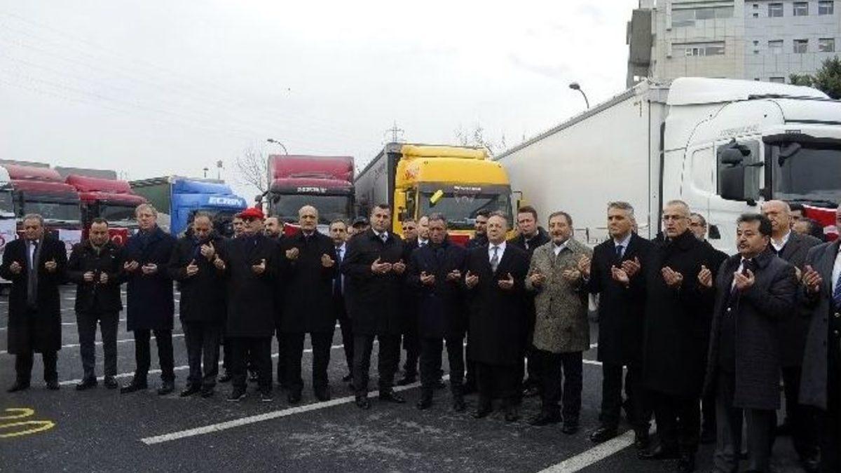 Tekstil ve hazı rgiyim sektöründe faaliyet gösteren ihracatçılar birlikleri ve dernekler “Halep İçin Elele” sloganı ile topladıkları 21 tır dolusu malzeme Kızılay Koordinasyonuyla Halep’e gönderdi.Halep’te savaştan etkilenenlere yardım göndermek için Tekstil ve hazır giyim sektöründe faaliyet gösteren İhracatçılar birlikleri ve dernekler “Halep İçin Elele” sloganı ile topladıkları 21 tır dolusu malzemenin Kızılay Koordinasyonu ile Halep’e gönderilmesine ilişkin Dış Ticaret Kompleksi bahçesinde tören ile düzenlendi. Törene, Türk Kızılay Genel Başkanı Dr. Kerem Kınık, İTHİB Yönetim Kurulu Başkanı İsmail Gülle, İHKİB Yönetim Kurulu Başkanı Hikmet Tanrıverdi, İDMİB Yönetim Kurulu Başkanı Mustafa Şenocak, İHİB Yönetim Kurulu Başkanı Uğur Uysal, BATİAD Yönetim Kurulu Başkanı Aydın Erten, ÇSS Yönetim Kurulu Başkanı Bülent İyikühal, LASİAD Yönetim Kurulu Başkanı Giyasettin Eyyüpkoca, MESİAD Yönetim Kurulu Başkanı Yusuf Gecü ve destek veren kurumların çalışanları katıldı.Gıda ürünleri, Giyim Malzemesi, Battaniye, Ayakkabı ve Temizlik malzemeleri gibi temel ihtiyaç maddelerinin yer aldığı 21 Tır Dolusu yardım malzemesi dualar eşliğinde Dış Ticaret Kompleksi bahçesinde düzenlenen tören ile Halep’e gönderdi. Protokol konuşmaları ile başlayan törende Halep’te insanlık dramı yaşayan vatandaşlar için dualar edildi. Ardından 21 tır dolusu yardım malzemesi yola çıktı.“Toplam gönderilen tırımız 1010’u aştı ”Tekstil ve hazırgiyim sektöründe faaliyet gösteren İhracatçılar birlikleri ve derneklerinin bir araya gelerek yardım topladıklarını ifade eden Türk Kızılay Genel Başkanı Dr. Kerem Kınık, “ Topladıkları 21 tır malzemeyi Kızılay’a bağışladılar. Biz de bu yardımları Halep’ten İdlib’e gelen 40 bin ihtiyaç sahibi insanın kullanması için bölgeye göndermiş olduk. Şimdiye kadar Kızılay aracılığı ile Suriye’ye Halep operasyonu başladığı günden buyana 575 tır insani yardım malzemesi gönderildi. Diğer sivil toplum kuruluşları ile birlikte bu sayı toplam gönderilen tırımız 1010’u aştı” dedi.“Biz bu vahşeti seyretmiyoruz”Suriye’de dünyanın seyrettiği bir vahşetin yaşandığını dile getiren İTHİB Yönetim Kurulu Başkanı İsmail Gülle, “Burada bu vahşeti sadece Türkiye seyretmiyor, askeri ile Cumhurbaşkanımız ve halkımız ile biz bu vahşeti seyretmiyoruz. Burada insanlıktan yana tavrımızı ortaya koyuyoruz. Bosna’da yaşandı seyredildi ama Halep için aynı şekilde kalması gönlümüz razı gelmedi” şeklinde ifadeler kullandı.