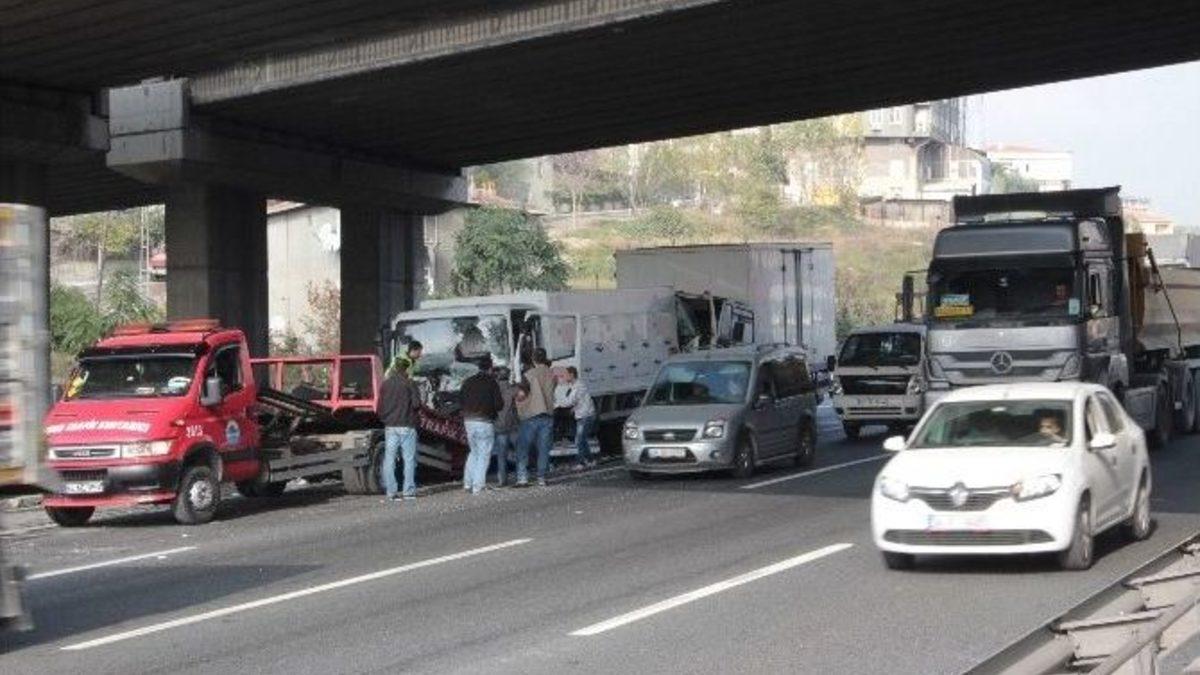Ümraniye TEM Otoyolu’nda aralarında kamyon ve TIR’ların da bulunduğu 5 araç zincirleme kazaya neden oldu. Kazada yaralanan olmazken, TEM Otoyolu’nun trafiği durma noktasına geldi.Kaza, Ümraniye TEM Otoyolu üzerinde meydana geldi. TEM Otoyolu Çakmak Köprü mevkiinde Ankara istikametine seyir halinde bulunan bir aracın ani fren yapması üzerine zincirleme kaza yaşandı. 2 kamyon, 2 TIR ve bir otomobilin karıştığı zincirleme kazada şans eseri yaralanan olmazken, TEM Otoyolu’nun trafiği durma noktasına geldi. Olay yerine gelen polis ekipleri, trafiği açmak için uzun süre uğraş verdi. Birbirine giren araçlar çekici yardımı ile ayrıldıktan sonra yol tekrar trafiğe açıldı.Kazaya karışan otomobilin sürücüsü Ertuğrul Bayram, “Birdenbire durduğunu gördüm. Ben de sağa kırmaya çalıştım kurtarır mıyım diye ama duramadım” dedi.