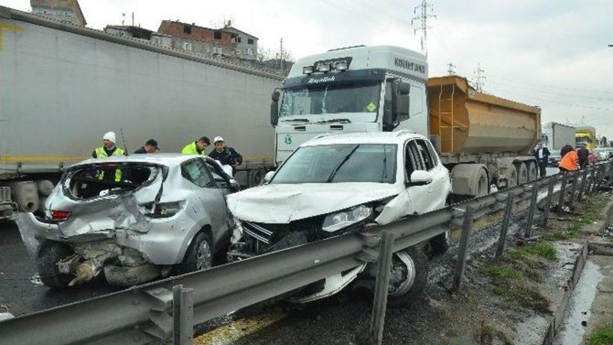 TEM otoyolunun Kocaeli Dilovası mevkiinde, Karayolları ekiplerinin yaptığı çalışmayı göremeyen 13 aracın karıştığı zincirleme trafik kazasında 10 kişi yaralandı.TEM otoyolunun Kocaeli kesimi, Dilovası mevkiinde meydana gelen ve 13 aracın karıştığı zincirleme trafik kazasında 10 kişi çeşitli şekilde yaralandı. Edinilen bilgi ve sürücülerin iddialarına Dilovası rampası olarak bilinen kesimde Karayolları ekiplerince yapılan çalışma sırasında virajda uyarı levhası bulunmaması sebebiyle viraja hızlı giren araçların aniden durması sonucu kaza meydana geldi.Dilovası rampası üzerinde karayolları ekiplerince durdurulan araçların farkına varamayan Uğur Ç. yönetimindeki 31 U 6166 plakalı TIR, duramayarak önce önündeki araçlara, ardından da bariyerlere çarptı. Arkadan gelen TIR’ın çarptığı otomobiller de çarpmanın etkisi ile savrularak önlerinde bulunan diğer araçlara çarptı. Toplam 13 aracın karıştığı zincirleme trafik kazasında, araçların içerisinde bulunan 9 kişi çeşitli şekillerde yaralandı. Kazaya karışan araç sürücülerinin haber vermesi üzerine olay yerine çok sayıda polis, itfaiye ve 112 Acil Sağlık ekibi sevk edildi. Yaralılar olay yerine gelen sağlık ekipleri tarafından yakında bulunan Gebze Fatih Devlet Hastanesi ve Darıca Farabi Devlet Hastanesi’ne kaldırıldı.Kaza nedeniyle TEM Otoyolu’nun Ankara istikametinde uzunluğu 10 kilometreyi bulan araç kuyrukları oluşurken, polis ekipleri TEM Otoyolu Gebze Gişeleri önünde önlem alarak gelen araçları D-100 Karayolu’na yönlendirdi. Kazadan dolayı TEM Otoyolu Ankara istikameti yaklaşık 3 saat boyunca araç trafiğine kapanırken, araçların çekilmesinin ardından trafik tekrar normale döndü.Hastaneye kaldırılan yaralıların hiçbirinin hayati tehlikesinin bulunmadığı öğrenilirken, polis ekipleri kaza ile ilgili inceleme başlattı.