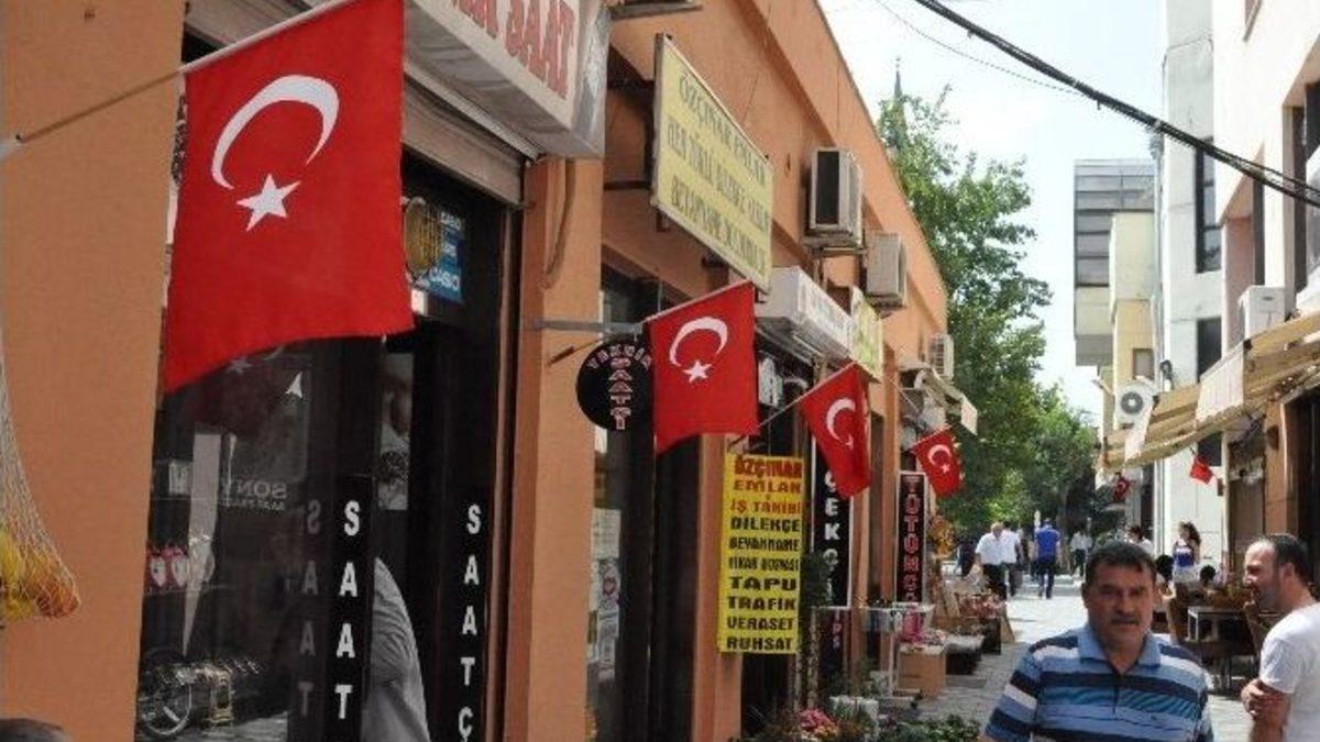 Hakkari’nin Dağlıca bölgesinde dün akşam saatlerinde meydana gelen terör saldırısında şehit düşen askerler için Eskişehirli esnaf duyarsız kalmadı. Dükkanlar, sokaklar şehitler için Türk bayraklarıyla donatıldı.Kentin hemen hemen her yerinde Eskişehir esnafı, dün akşam saatlerinde Hakkari’nin Dağlıca bölgesinde meydana gelen hain terör saldırısında şehit düşen askerler için dükkanlarını Türk bayraklarıyla süsledi. Fast food satıcıları, aktarlar, oyun salonları, kuyumcu gibi farklı iş kollarında dükkanlara sahip yüzlerce iş yeri sahibi, şehitlerine sahip çıktı. Bazı sokaklara ise dev Türk Bayrakları asıldı. Ayrıca iş yeri sahipleri, bayrakların yanında Eskişehir Ticaret Odasının Eskişehir esnafına ücretsiz olarak verdiği ‘Teröre karşı biriz beraberiz’ afişler de vitrinlerine koydu.Öte yandan dükkan sahipleri, şehit düşen tüm askerlere Allah’tan rahmet, yakınlarına baş sağlığı dileyerek, terör saldırılarının son bulması için devlet büyüklerinin harekete geçmesi gerektiğini söyledi.