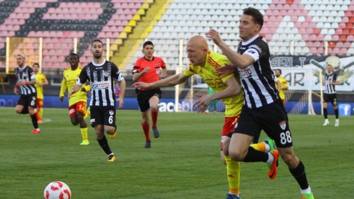 TFF 1. Lig’in 25. haftasında Manisaspor sahasında ağırladığı lider Evkur Yeni Malatyaspor’a 2-0 mağlup oldu.Maçtan dakikalar2. dakikada Yeni Malatyaspor savunmasında Sezer’in hatalı pasında topu önüne alan İsmail Haktan’ın ceza sahası dışı sağ çaprazdan sert şutunda meşin yuvarlak kale direğinin yanından dışarıya çıktı.20. dakikada Manisaspor’un atağında Umut’un ceza yayının hemen solundan kaleye gönderdiği top, az farkla kale direğinin yanından auta gitti.40. dakikada İrfan’ın ceza yayının solundan kullandığı serbest vuruşta meşin yuvarlak üstten dışarıya çıktı.55. dakikada Pereira’nin ceza sahası içi sağ çaprazdan orta şut karışımı vuruşunda kaleci İsmail, uzanarak meşin yuvarlağı tokatladı ancak dönen topu takip eden Eren’in altıpas içerisinde savunmanın arasından vurduğu top, filelerle buluştu. 0-171. dakikada Evkur Yeni Malatyaspor’da Sedat’ın sol köşeden kullandığı korner atışı sonrası Manisaspor savunması içerisinde oluşan karambolde son olarak topa dokunan Eren, meşin yuvarlağı ağlarla buluşturdu. 0-283. dakikada Manisaspor savunmasının hatasında topu önüne alan Dialiba Diabang’ın altıpas çizgisinin hemen önünden şutunda kaleci İsmail’in göğsüne çarpan top tehlike bölgesinden uzaklaştı.89. dakikada İsmail Haktan’ın ceza yayının hemen gerisinden sert şutunda kaleci Ertaç, meşin yuvarlağı kornere tokatladı.Stat: Manisa 19 MayısHakemler: Yaşar Kemal Uğurlu xx, Ekrem Kan xx, Alpaslan Dedeş xxManisaspor: İsmail x, Berk x, Erman x, Dimov x, Ufuk x, Umut x (Sebaihi dk. 61 xx), Metin xx, İsmail Haktan xx, Savaş x, Gökhan x (Ozan dk. 73 x), Bahattin x (Perovic dk. 77 x)Yedekler: Emrah, Mikic, Ümit Yasin, Perovic, Hakan TuranTeknik Direktör: Sait KarafırtınalarEvkur Yeni Malatyaspor: Ertaç xx, Caner xx, Murat Akça xx, Sezer xx, Sedat xx, Pereira xxx, İrfan xx (Murat Yıldırım dk. 67 xx), Azubuike xx, Dialiba Diabang xx (Sunday Mba dk. 85 x), Ferhat ? (Rahman Buğra dk. 6 xx), Eren xxxYedekler: Hakan Canbazoğlu, Yiğitcan, Amutu, AhmetTeknik Direktör: İrfan BuzGoller: Eren (dk. 55 ve 71) (Evkur Yeni Malatyaspor)Sarı kartlar: Erman, Berk (Manisaspor), İrfan, Sedat, Murat Akça (Evkur Yeni Malatyaspor)