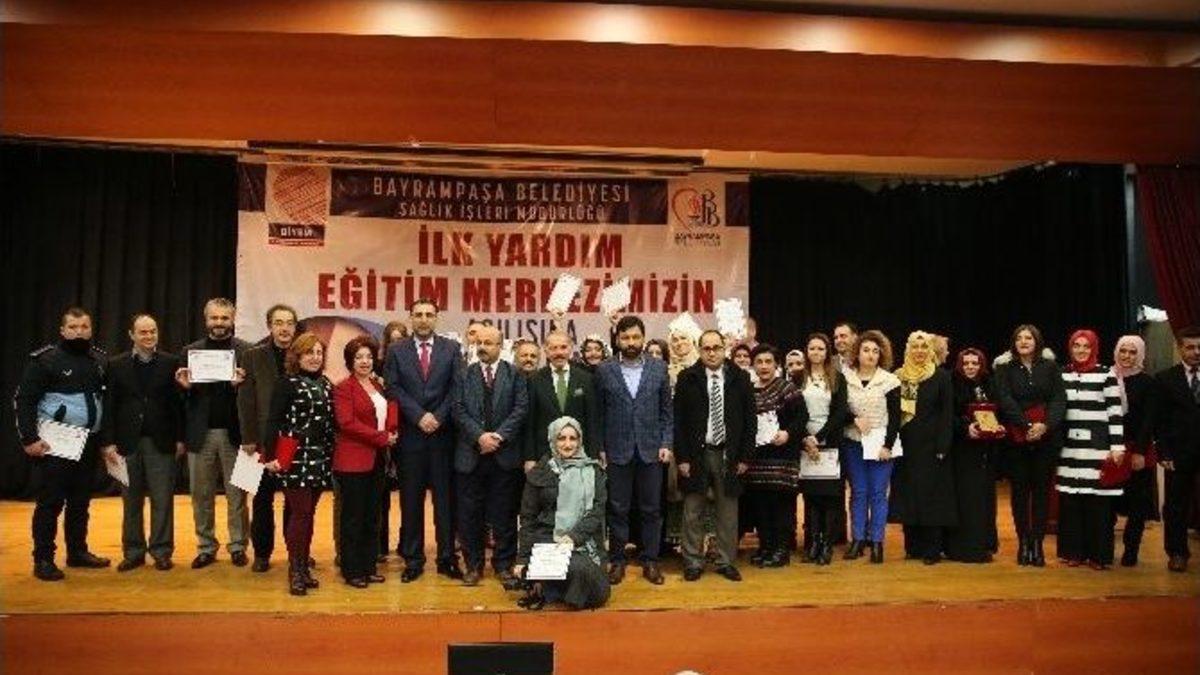 Bayrampaşa Belediyesi, tıbbi yardım eğitimi alan kursiyerlere sertifikalarını düzenlenen törenle verdi.Bayrampaşa Belediyesinin 2 yıl önce başlattığı kurs, ilk kursiyerlerini mezun etti. 2 yıldır eğitim veren İlk Yardım Eğitim Merkezinin sembolik açılışı ve kurs eğitimini bitiren kursiyerlere sertifikalarının verilmesi için tören düzenlendi. Törene Bayrampaşa Belediye Başkanı Atila Aydıner de katıldı. Tıbbi yardım eğitimi ile ilgili sinevizyon gösteriminin ardından İlk Yardım Eğitim Merkezi sorumlusu Dr. Kenan Kır, merkezin faaliyetleri hakkında detaylı bir sunum yaptı.Bayrampaşa Belediye Başkanı Atila Aydıner, belediye olarak sağlık alanında önemli projeleri yürüttüklerini ifade etti. Sağlık hizmetlerinin vatandaşlar için önemine değinen Aydınder, “İki yıldan beri 250’nin üzerindeki kursiyerlerimize tıbbi ilk yardımdaki acil müdahaleyi öğrettik. Bunların pratiğini yaptık ve 2 yıl sonunda da burada sertifikaları kursiyerlerimize dağıttık. Eğitmenlerimiz 2 yıl boyunca kursiyerlerimize sürekli eğitim vererek, onların ilk tıbbi müdahalede nasıl bulunacakları hakkında bilgiler verdi. Bu sertifikalar aynı zamanda İl Sağlık Müdürlüğü tarafından onaylı sertifikalardır. Bu vesileyle Bayrampaşa Belediyesi olarak sağlıktaki bu açılımlarımızın içerisinde bu önemli projemizle Türkiye’de ilk defa sertifikalı tıbbi ilk yardım kursu veren belediye olma imkanına kavuşmuş olduk” dedi.Tören sonunda Bayrampaşa Belediye Başkanı Atila Aydıner tarafından kursta eğitim veren eğitmenlere plaketleri takdim edildi. Kursu başarıyla tamamlayan kursiyerlere de sertifikaları Başkan Aydıner tarafından verildi.