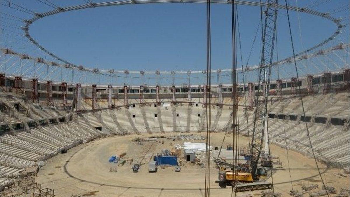 Bursa Büyükşehir Belediyesi tarafından yaptırılan ve projesi dünyanın en iyileri arasında gösterilen 45 bin kişilik yeni stadyumun yaklaşık 7 bin tonluk çatısını dengeleyecek çelik halatları germe çalışmaları tamamlanma aşamasına geldi.Yaklaşık 180 bin metrekarelik inşaat alanıyla Büyükşehir Belediyesi’nin en büyük imalatlarından biri olan yeni stadyumda çalışmalar tüm hızıyla sürüyor. Tüm malzemeleri gelen çatının birinci fazını oluşturan 3 bin 500 tonluk çelik yapının montajı tamamlanırken, Türkiye’de sadece Boğaz Köprüsü’nde kullanılan mukavemeti yüksek çelik halatlar da gerilmeye başladı. İsviçre’den getirilen 96 adet özel hidrolik krikoların yerleştirilmesinin ardından eş zamanlı olarak yapılan halat germe çalışmalarının sonuna gelindi. Çatının en üst noktasını oluşturan çelik dev halka böylelikle sahanın zemininden yukarıya kaldırılmış oldu.YEŞİL-BEYAZA BÜRÜNECEKBüyükşehir Belediye Başkanı Recep Altepe, beraberindeki Genel Sekreter Seyfettin Avşar ve Genel Sekreter Yardımcısı Mustafa Altın ile birlikte stadyumda devam eden halat germe çalışmalarını yerinde inceledi. Asma-germe membran sisteminin uygulanacağı dünyanın sayısı stadyumlarından birini Bursa’ya kazandırdıklarını dile getiren Altepe, “Artık germe çalışmalarında sona gelindi. Yerle serili olan çatı artık yukarıya çıkmış oldu. Yeşil - beyaz renkteki membran tabakayı serme çalışmaları da 15 gün sonra başlayacak. İnşallah her şeyi ile bu yıl içinde açılması için gayret ediyoruz. Avrupa zaferleri ve Türkiye şampiyonluklarını burada yaşamak istiyoruz. Bursaspor için ne yapsak az” diye konuştu.Velodromda 68x105 metre saha alanı, 283x212 metre kabuk ölçüleri bulunan 3 kat, 2 bodrum katı ve 1 platform katı olmak üzere toplamda 6 kat olarak yaklaşık 179 bin 611 metrekare betonarme inşaat alanı içeren Bursa Büyükşehir Stadyumu 8 bloktan oluşuyor. 45 bir seyirci kapasiteli stadyumda 207 engelli koltuğu buluyor. Kapalı otopark 652 araç ve 2 otobüse hizmet verirken, daha sonraki ihalede planlanan çevre tanzimi ile beraber açık alan dahil olmak üzere toplam 1562 araç ve 256 otobüse hizmet verecek 96 bin 151 metrekare otopark alanı oluşturulacak.Dünyada takımın simgesiyle projelendirilen ve ender stadyumlardan biri olan Büyükşehir Stadyumunun çatısı Bursaspor’un simgesi olan ‘timsah’ görümünde olacak. Toplam 4 bin 484 metrekare alana sahip 72 adet locanın bulunacağı stadyumda 60 adet turnike ve 84 adet stat giriş kapısı yer alacak.