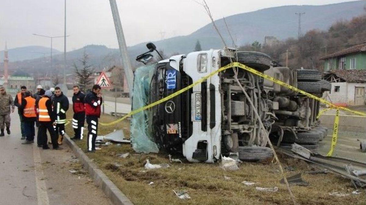 Amasya’da devrilen hafriyat yüklü tırın sürücüsü hayatını kaybetti.Edinilen bilgiye göre, Tokat’ın Turhal ilçesinden Samsun’un Havza ilçesine mıcır nakletmek için erkenden yola çıkan 47 yaşındaki Cemalettin Gülmez’in kullandığı 66 LU 301 plakalı tır, Kapıkaya köyü girişindeki virajı geçtikten sonra kontrolden çıkarak önce istinat duvarına, ardından yan yatarak yolun ortasındaki aydınlatma direğine çarptı. Kazada, sürücü Gülmez olay yerinde hayatını kaybetti. Gülmez’in cenazesi olay yerine gelen Amasya Belediyesi itfaiye ekipleri tarafından sıkıştığı yerden çıkartıldı. Cenazenin götürüldüğü esnada olay yerine gelip kardeşinin peşinden koşan ağabeyini çevredekiler sakinleştirmeye çalıştı. Polis ve jandarma ekipleri inceleme yaparken, Amasya-Tokat karayolunun tek yönü yaklaşık 3 saat boyunca ulaşıma kapandı.Tır sürücüsünün arkadaşlarından Mustafa Karabacak, sabah birlikte namaz kılıp peş peşe yola çıktıkları 4 çocuk babası Gülmez’in 15 gün önce işe başladığını, akşam şantiyede kalırken 3 gün önce vatani görevini yapmak için Manisa’ya gönderdiği oğlu ile telefonda görüştüğünü anlattı.