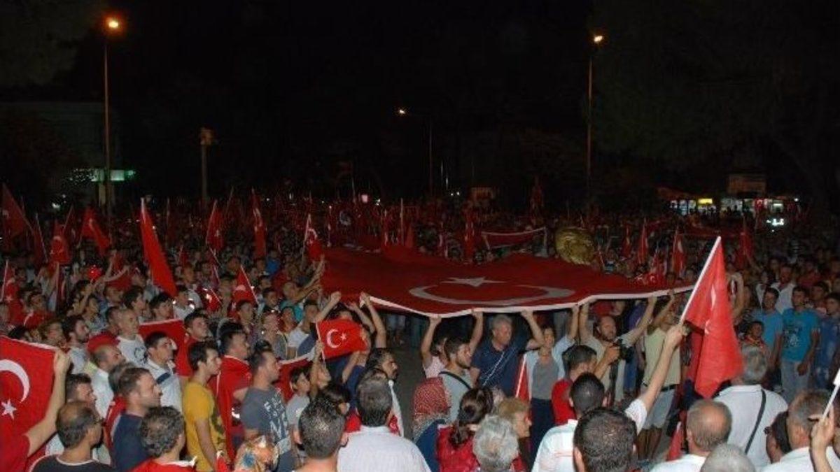 Tire teröre karşı tek yürek oldu. Teröre Lanet ve Şehitlere Sahip Çıkma Eylemi Ortak Platformu’nun düzenlediği protesto yürüyüşüne 6 bin kişi katıldı.İzmir’in Tire ilçesi, teröre karşı tek yürek oldu. 6 bini aşkın Tireli vatandaş, Teröre Lanet ve Şehitlere Sahip Çıkma Eylemi Ortak Platformu’nun düzenlediği protesto yürüyüşünde bölücü PKK terör örgütüne lanet yağdırdı. AK Parti, CHP, MHP, DP, ADD, Esnaf, Ziraat ve Ticaret Odaları, Süt Kooperatifi, Tire Kültür Derneği, Türk Eğitim Sen ve Eğitim İş Sendikaları ile Teira Riders Motosiklet Grubu’nun oluşturduğu ortak platformun çağrısı ilçede yankı buldu. Türk Bayraklarıyla donatılan ilçede gün boyu hummalı hazırlıklar yapıldı. 20.30’da Şehitler Parkı önünde toplanan binlerce vatandaş, İstasyon caddesi boyunca “Kahrolsun PKK”, “Şehitler Ölmez Vatan Bölünmez”, “Ne Mutlu Türküm Diyene” şeklinde sloganlar atarak, Cumhuriyet Meydanı’nda bulunan Atatürk Anıtı önüne yürüdü. Korteje, evlerinin balkonlarına çıkan vatandaşlar da alkışlarla destek verdi. Şehitler anısına gerçekleştirilen saygı duruşunun ardından hep bir ağızdan İstiklal Marşı ve Atatürk’ün Gençliğe Hitabesi okundu.TERÖRE LANET YAĞDITeröre Lanet ve Şehitlere Sahip Çıkma Eylemi Ortak Platformu’nun basın açıklamasını ise Tire Süt Kooperatifi Başkanı Mahmut Eskiyörük okudu. Açıklamada özetle şu görüşlere yer verildi. “Yüzyıllarca üzerinde kardeşçe yaşadığımız topraklarımızda 30 yıldan buyana halkın birlikte barış içinde yaşama iradesi yok sayılarak, bölünme senaryoları yazılıyor. Eli kanlı terör örgütü PKK, yine kalleşçe yöntemler ile kaos ortamı yaratmak için her gün vatan evlatlarımızı şehit etmektedir. Öncelikle vatanımızın birliği ve beraberliği için gözlerini kırpmadan canlarını ortaya koyan aziz şehitlerimize Allah’tan rahmet, kederli ailelerine ve milletimize başsağlığı diliyoruz. Analar ağlamasın, ocaklar sönmesin, gencecik fidanlar devrilmesin. Ülkemizde barış ve kardeşlik hakim olsun. Tasması dış güçlerin elinde olan terör örgütü ülkemizi kaos ortamına sürükleyip, kardeşi kardeşi kırdırtmaya çalışmaktadır. Bu süreçte en önemli görev, başta siyasi mekanizmalar olmak üzere biz sivil toplum kuruluşlarına düşmektedir. Teröre karşı kararlı bir beraberlik sergilenmesi gerekmektedir. Atatürk ve aziz Türk Milleti’nin büyük bedeller ödeyerek kurduğu Cumhuriyetimizi yıkmaya dünyadaki hiçbir terör örgütünün gücünün yetmeyeceğini, birlik ve beraberlik içinde tüm dünyaya ilan ediyoruz. Türkiye’nin üniter yapısını ve ulusal bütünlüğünü hedefleyen ayrılıkçı teröre karşı barış içinde bir arada yaşamak için birey ve kurumların hep birlikte mücadele etme çağrısını kamuoyuna saygı ile duyuruyoruz. Farklı düşünsek de, söz konusu vatan olduğunda gerisi teferruattır.”HDP’Yİ PROTESTO ETTİLERMitingin ardından, HDP Tire İlçe Merkezi önünde toplanan bir grup, PKK aleyhine sloganlar attı. İlçe binasına girmek isteyen gruba Çevik Kuvvet polisleri biber gazıyla müdahale etti. Öfkesi bir türlü dinmeyen kalabalık parti binasının camlarını attıkları taşlarla kırdıktan sonra HDP ilçe merkezine Türk Bayrağı astı, parti tabelasını indirdi. Olaylar emniyet güçlerinin çabalarıyla büyümeden önlendi.
