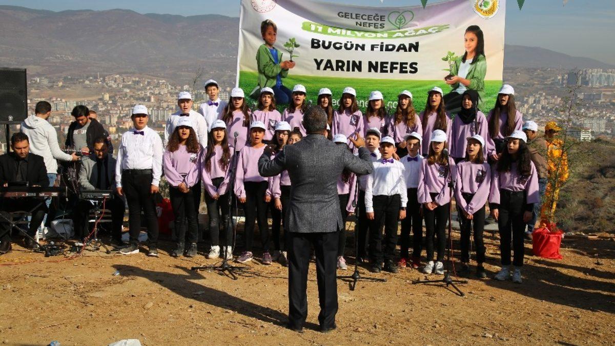 Geleceğe Nefes Seferberliği kapsamında gerçekleştirilen fidan dikim etkinliğine özel olarak bestelenen Tokat’tan bestelenen marş öğrenciler tarafından seslendirildi. Etkinlikte yaklaşık 50 bin fidan toprakla buluşturuldu.