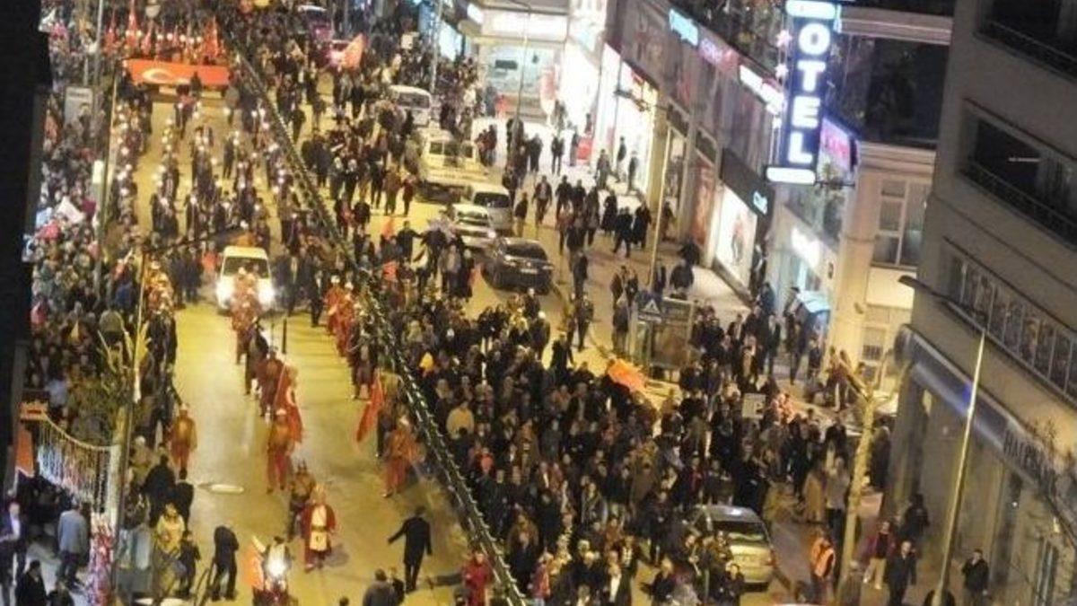 Tokat’ta, AK Parti Gençlik Kolları tarafından Çanakkale Zaferi ve Şehitleri Anma günü dolayısı ile düzenlenen “Kardeşlik Yürüyüşü"ne partililer yoğun ilgi gösterdi.Gaziosmanpaşa Stadyumu önünden mehteran takımı eşliğinde başlayan yürüyüşe AK Parti Tokat Milletvekilleri Zeyid Aslan, Dilek Yüksel, AK Parti İl Başkanı Adem Çelik, AK Parti Tokat Belediye Başkan Adayı Eyüp Eroğlu ile birlikte çok sayıda partili katıldı. Ellerinde Türk Bayrakları ve meşalelerle yürüyüş yapanlara vatandaşlarda alkışları ile destek verdi. Cumhuriyet Meydanı'nda sona eren yürüyüşte Çorum Belediyesi mehter takımı mini bir konser verdi. AK Parti İl Başkanı Adem Çelik ve AK Parti Tokat Milletvekili Dilek Yüksel’in konuşmasının ardından kürsüye çıkan AK Parti Tokat Milletvekili Zeyid Aslan, Tokat’ın şehidine, toprağına sahip çıktığını gösterdiğini söyledi. Tokat’lının 30 Mart’ta büyük bir zafere imza atacağını söyleyen AK Partili Aslan, “Sizde bu yürek bu aşk, bu coşku olduğu sürece ne bu milleti kimse bölebilir ne de bu milletin onurunu itibarını dünyada yeniden yazan Tayyip Erdoğan’ı kimse indiremez ” dedi. Son olarak kürsüye çıkan AK Parti Tokat Belediye Başkan Adayı Eyüp Eroğlu, seçim gününe kadar çalışmalarına durmandan devam edeceklerini ifade ederek,“Birileri bugün istediği oyunları istediği tuzakları, istediği kumpasları kurmaya çalışırsa çalışsınlar. Ben onlara diyorum ki; “Bize Somali’deki, Filistin’deki, Sudan’daki Afrika’da gözünün yaşını sildiğimiz Müslümanların, milletimizin duası yeter” diye konuştu.