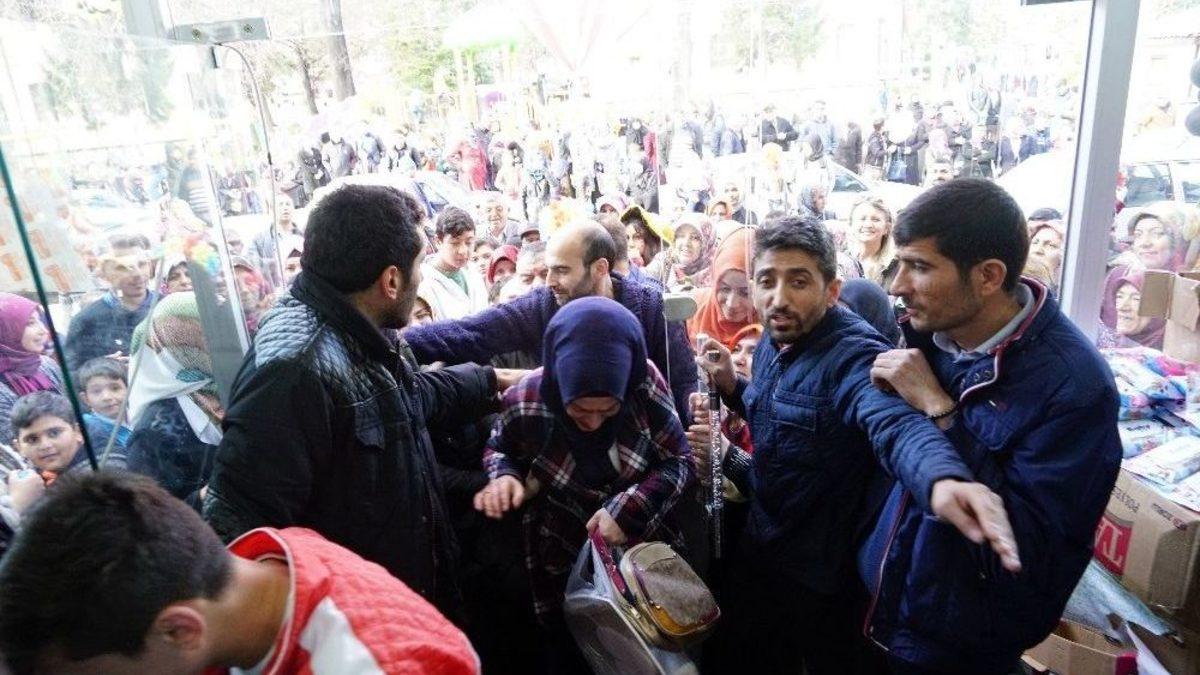 Tokat’ta züccaciye ürünlerinin satışa sunulduğu alışveriş merkezi açılışında 3.5 liraya satılan ürünlerden almak isteyen vatandaşlar izdihama neden oldu.Tokat’ta Dudayev Parkı yanı Buzluk Sokak’ta züccaciye ürünlerinin satışa sunulduğu mağazada ’ne alırsan 3.5 lira’ kampanyası vatandaşların dikkatini çekti. Binlerce ev eşyasının satışa sunulduğu mağazada vatandaşlar içeri girmek için adete bir birleriyle yarıştı. İçeri güçlükle girenler ise yaşanan kalabalıkta alışveriş yaptı. Dışarı çıkmakta içeri girmek kadar zor oldu. Ellerinde seleler, tabureler, hediyelik eşyalarla dışarı çıkmak isteyenlere görevliler yardım etti. Mağaza sorumlusu beklemedikleri yoğun ilgiden dolayı şaşkın olduklarını kaydetti.