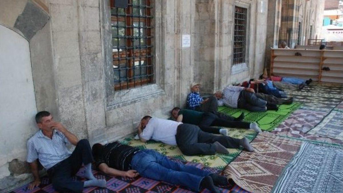 Tokat’ta hava sıcaklıklarının 35 dereceyi bulması nedeniyle sıcaktan bunalan vatandaşlar cami avlusunda serinledi.Tüm yurtta olduğu gibi Tokat’ta da son günlerde hava sıcaklığı hissedilir derecede arttı. Sıcaklığın öğle saatlerinde 35 dereceyi bulduğu Tokat’ta sıcaktan bunalan vatandaşlar Meydan Cami avlusunda şekerleme yaptı. Bazı vatandaşlar ise çam ağaçları altındaki çimlerin üzerine uzandı.Ramazan ayının sıcak ve uzun günlere denk gelmesi nedeni ile zor anlar yaşayan vatandaşların aksine durumundan memnun olanlar da vardı. 68 yaşındaki Osman Altay, sıcak havaların kendisini etkilemediğini ifade ederek, “Canım ne su istiyor ne yemek istiyor. Çok rahatım. Bazı insanlar sabırsız olduğu için etkileniyor” dedi.Ramazan davulcusu Musa Yılmaz ise namazdan sonra zamanını cami avlusunda gölgede dinlenerek geçirdiğini ifade ederek, “Burası çok serin. Sıcak havada burada serinliyoruz” diye konuştu.İnşaatlarda işçilik yaparak geçimi sağlayan Ömer Durmaz ise Ramazan’ın çalışmayanlar için güzel geçtiğini ifade ederek, "İşsiz kaldığımız zamanlarda burada serin havada şekerleme yapıyoruz. Bugün hava çok sıcak ama caminin avlusu serin” şeklinde açıklamalarda bulundu.