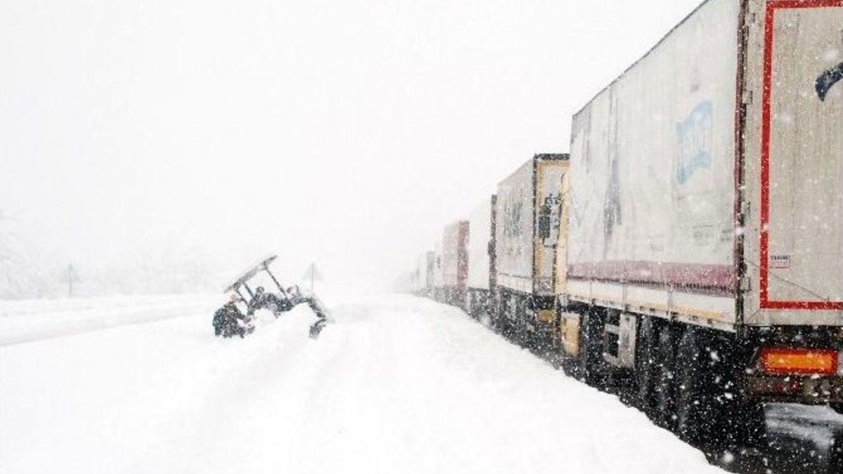 Tokat’ta yoğun kar yağışı nedeni ile Niksar ve Reşadiye ilçeleri arasında kalan uluslararası D-100 karayolunda yaklaşık 6 saattir ulaşım sağlanamıyor.Tokat’ta gece boyunca devam eden yoğun kar yağışı sonucu ulaşımda aksamalar yaşanıyor. İran’a yük taşımacılığı yapan araçların sıklıkla kullandığı yolda kar yağışı etkili oldu. Niksar ile Reşadiye ilçesi arasından geçen D-100 karayolunun 35. kilometresi Çakmak mevkisinde kayarak yolu kapatan tırı kurtarma çalışmasına giden Karayolları ekiplerini kara saplanması sonucu yol trafiğe kapandı. Yolda araçların uzun kuyruklar oluşturması nedeni ile bölgeye kurtarma ekipleri de güçlükle ulaştı. Tırların kilometrelerce kuyruk oluşturduğu yolda mahsur kalanlara AFAD ekipleri ile birlikte Kızılay ekipleri meyve suyu, kek ve su ikram etti.Tır yolu kapattı trafik kilitlendiTokat Valisi Cevdet Can, yoğun kar yağışı nedeniyle bir tırın kaydığını, onu kurtarmaya giden ekibin de kara saplanması sonucu trafiğin kilitlendiğini söyledi. Sivas Suşehri bölgesi ile Niksar ilçeleri arasında yolun trafiğe kapatıldığını ifade eden Vali Can, ekiplerin çalışmalarına devam etiğini kaydetti.Yüzlerce tır yolda kaldıBazı tır sürücüleri geceyi benzinlikte geçirdiklerini, uzun süredir mağdur olduklarını söyledi. Samsun’dan Reşadiye ilçesine yük taşıyan Musa Demirtaş, yolun kapalı olması nedeni ile mağdur olduklarını söyledi. Karayollarını eleştiren Demirtaş, “Yol açık diye geliyoruz ama durumu ortada. En azından uygun yerlerde bekletilsek mağdur olmazdık. Şu halimize bakın, perişan olduk. Saatlerdir buradayız” dedi."İnsanlar şimdi Karayollarının araçlarını kurtarmaya çalışıyor"Uzun araç kuyrukları oluşan yolda aracıyla mahsur kalan Yalçın Çırtan, "Reşadiye-Niksar arasında insanlar yollarda mahsur kaldı. Karayollarının araçları kendilerini çıkaramıyor. İnsanlar şimdi Karayollarının araçlarını kurtarmaya çalışıyor" diye konuştu.Yolun açılma çalışmaları devam ederken, kar yağışı ise aralıklar ile tipi halinde sürdüğü öğrenildi.