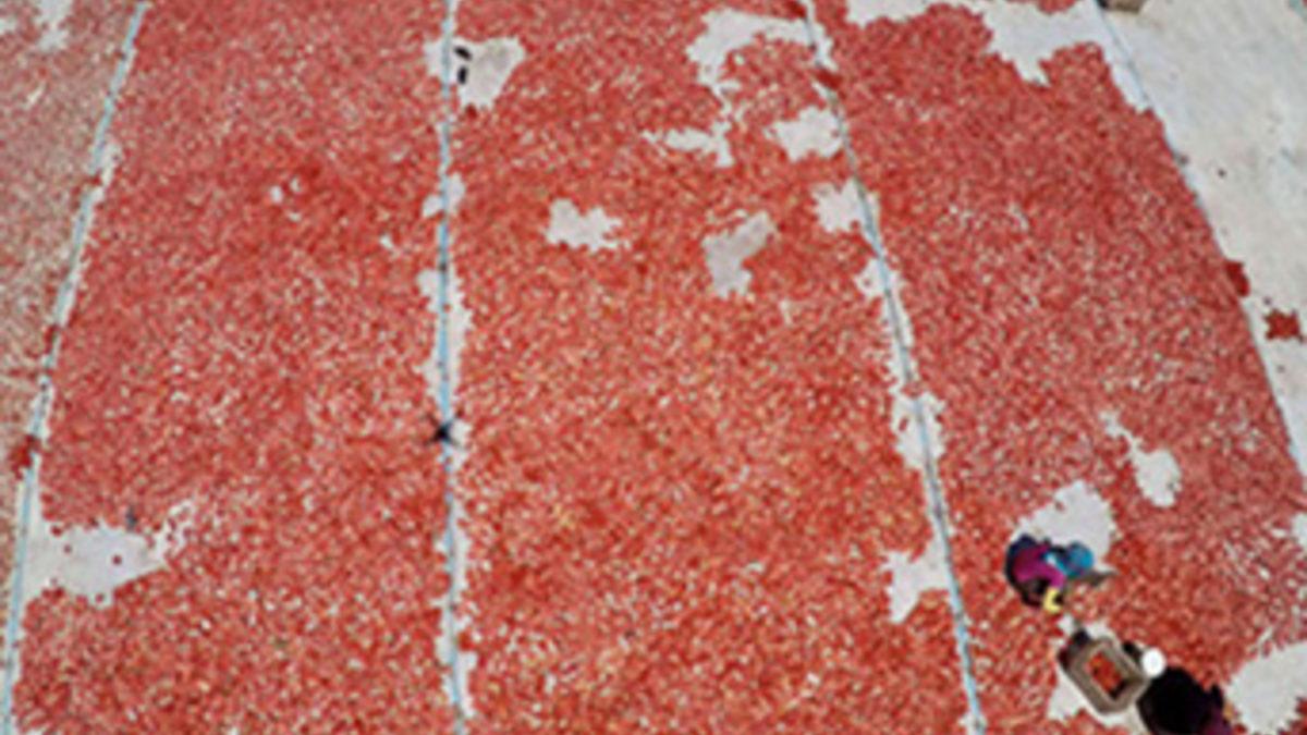 İzmir'in Torbalı ilçesi, domates kurutmak için açılan sergilerle kırmızı renge büründü. İlçedeki kurutulmuş gıda işleyen 10'a yakın fabrika aracılığı ile Torbalı'dan dünyanın birçok ülkesine ihracat yapılıyor