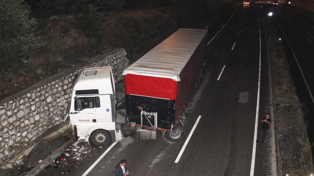 Olayı gören Çetin Bekiroğlu yönetimindeki 61 ABS 274 plakalı tır, kaza yapan araca çarpmamak için durdu. Bu esnada sürücüsünün ismi öğrenilemeyen 01 641 AX plakalı tır, yolda duran Çetin Bekiroğlu'nun kullandığı tıra arkadan çarptı.